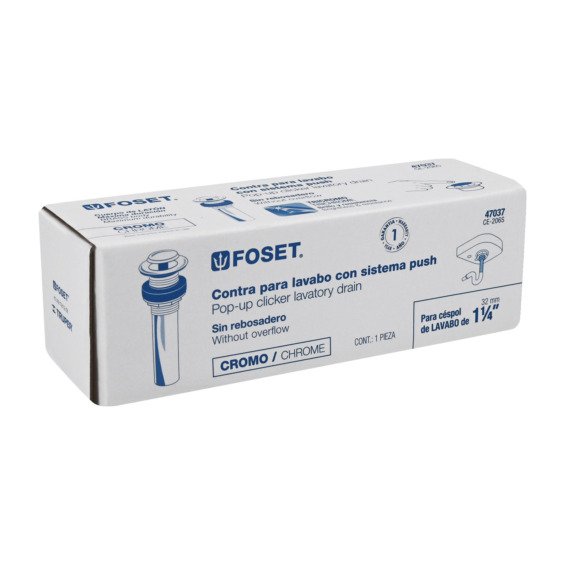 Contra p/lavabo sin rebosadero, sistema push, cromo, 1-1/4′