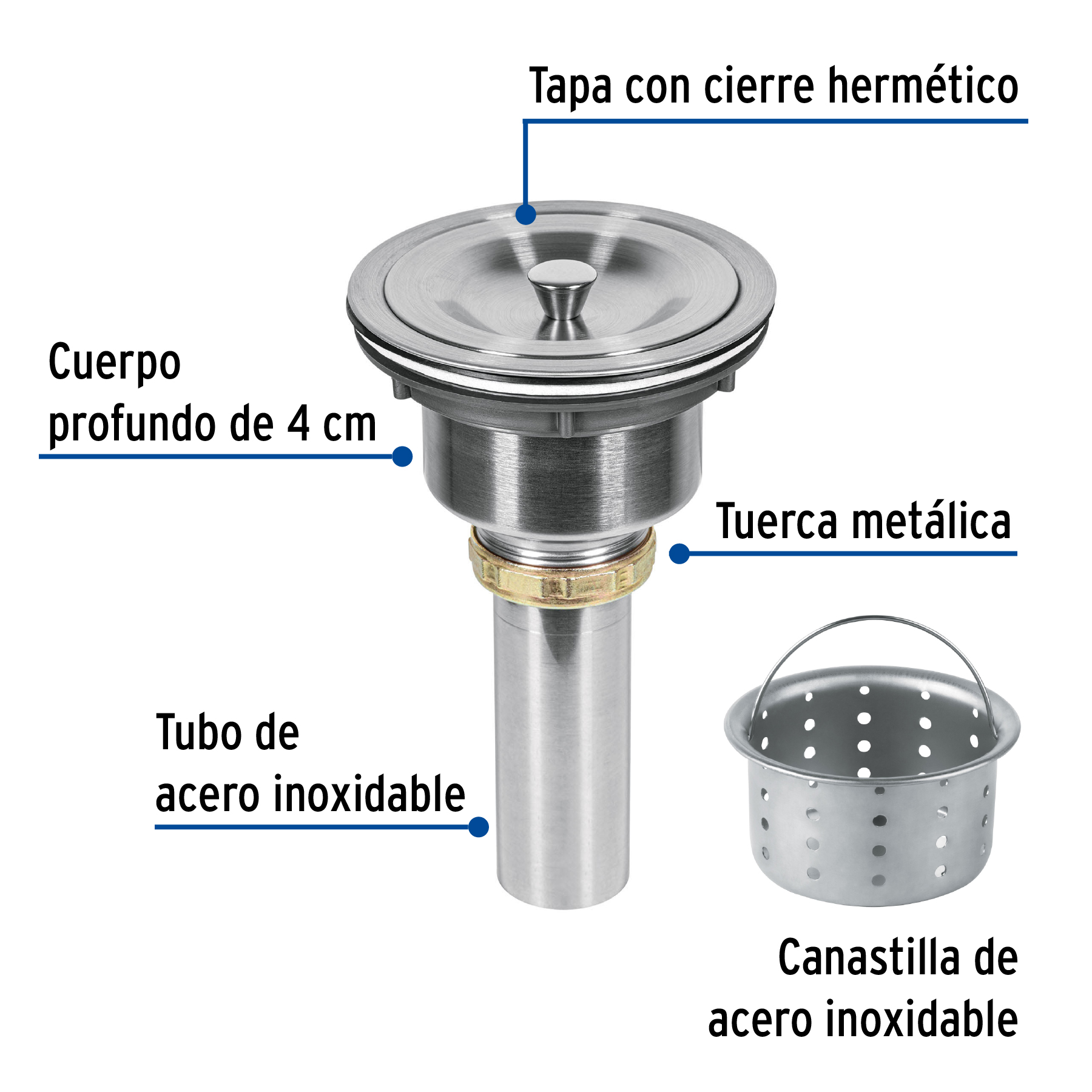 Contracanasta 3-1/2′ inox, cuerpo profundo,con tapa, Riviera