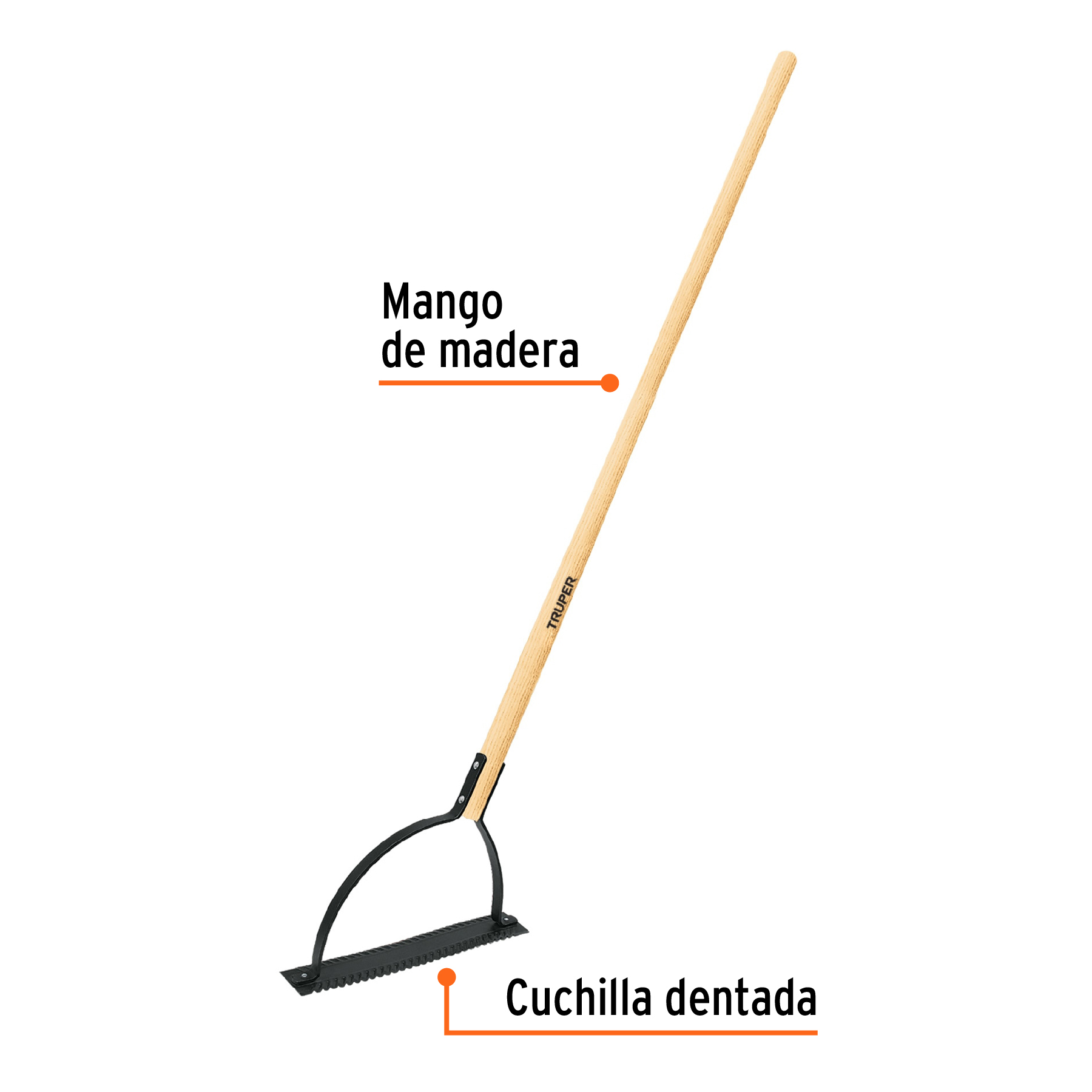 En trabajos de preparación y limpieza de áreas para jardín Mango fabricado en madera de fresno, laqueado
