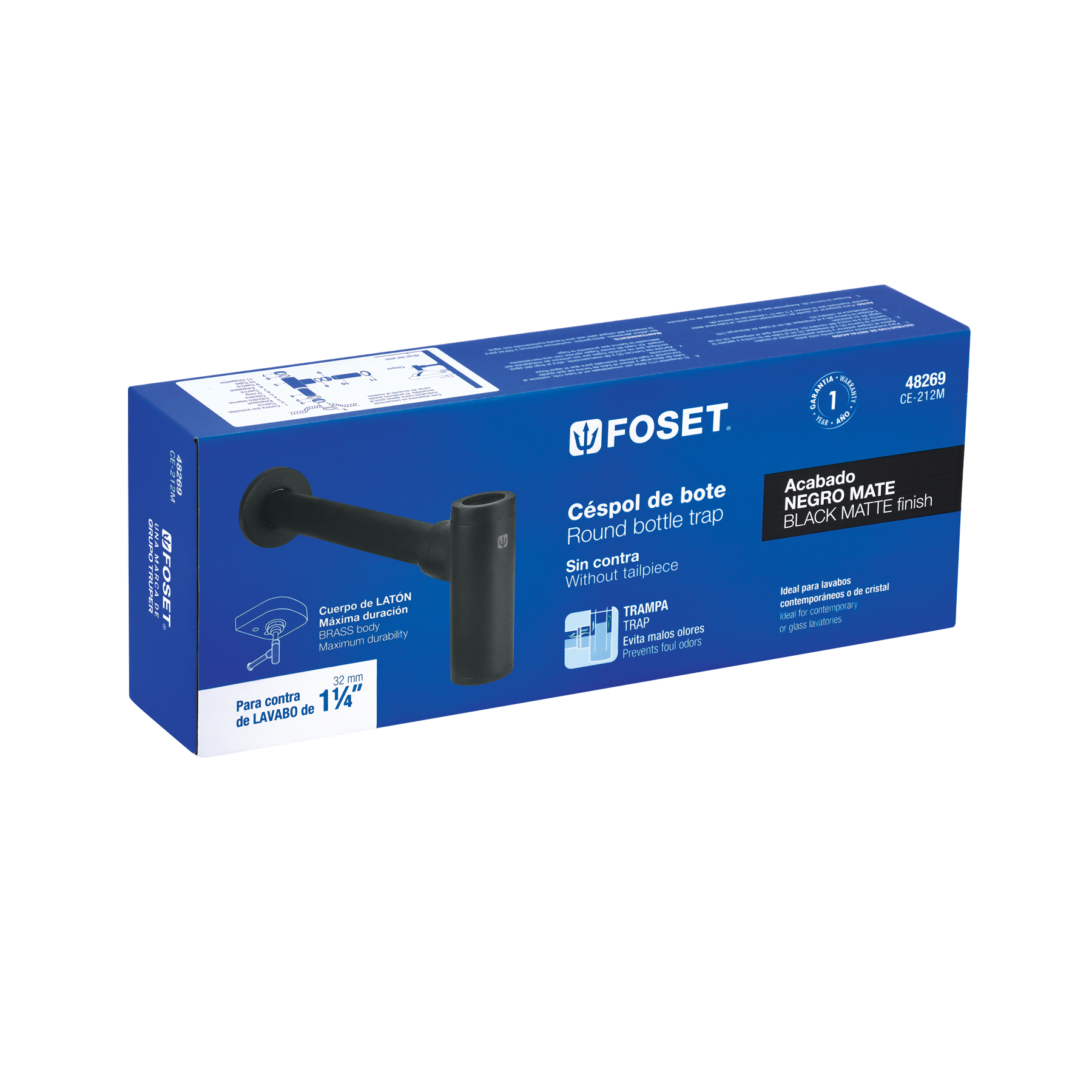 Sé el primero en valorar “Céspol de bote minimalista 1 1/4′, negro, para lavabo, Foset” Cancelar la respuesta