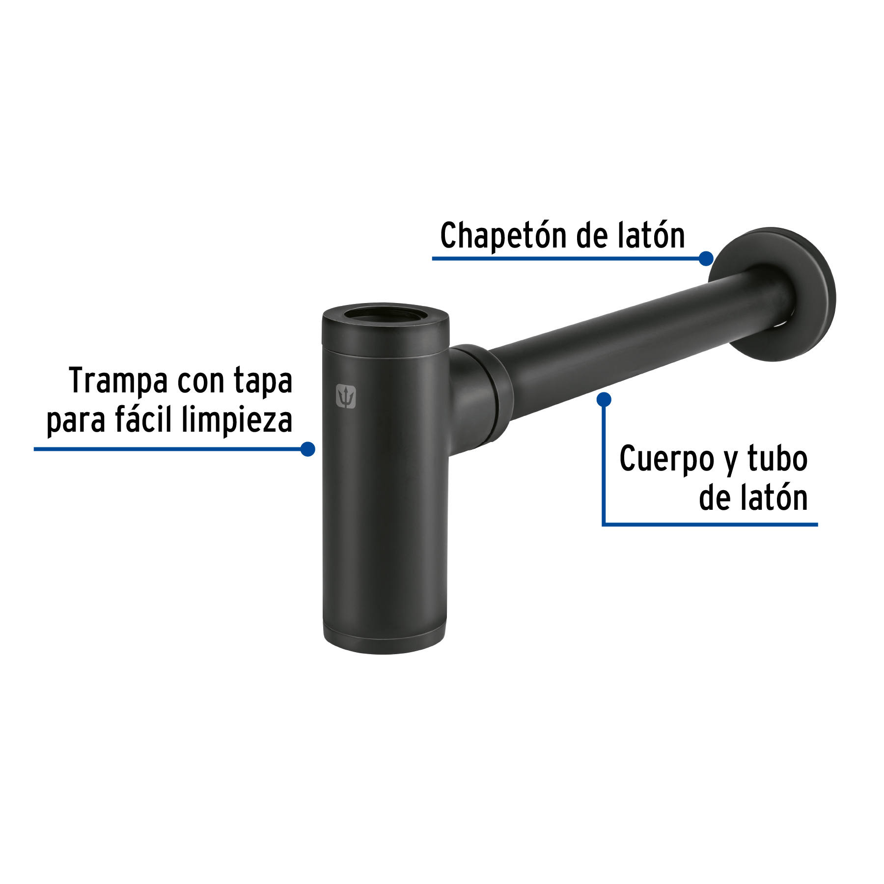 Céspol de bote minimalista 1 1/4′, negro, para lavabo, Foset