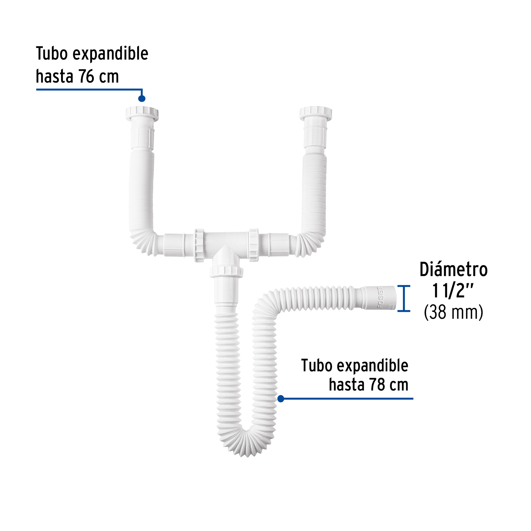 Céspol flexible doble para fregadero, polipropileno, 1-1/2′