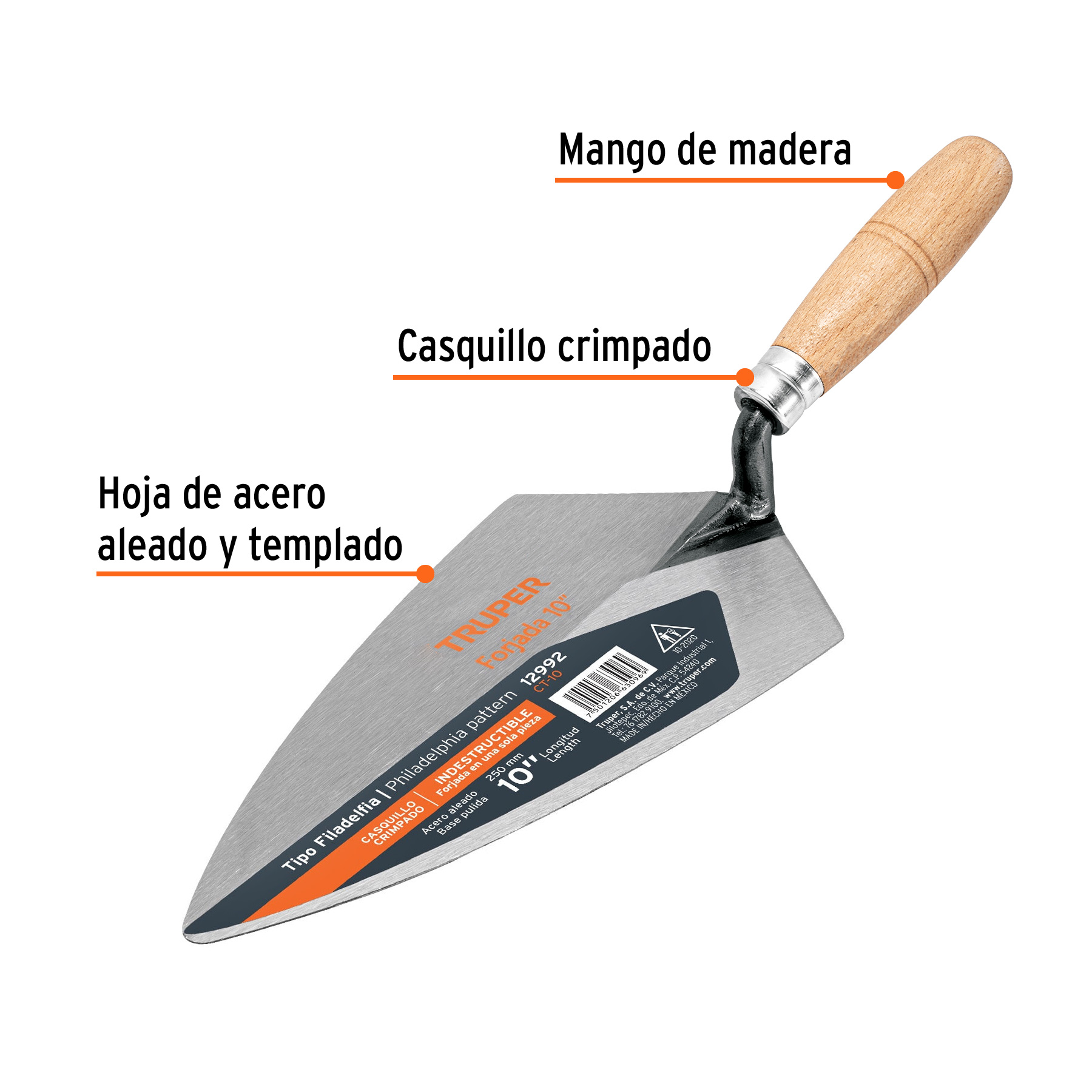 Cuchara para albañil 10′ forjada tipo Filadelfia, TRUPER