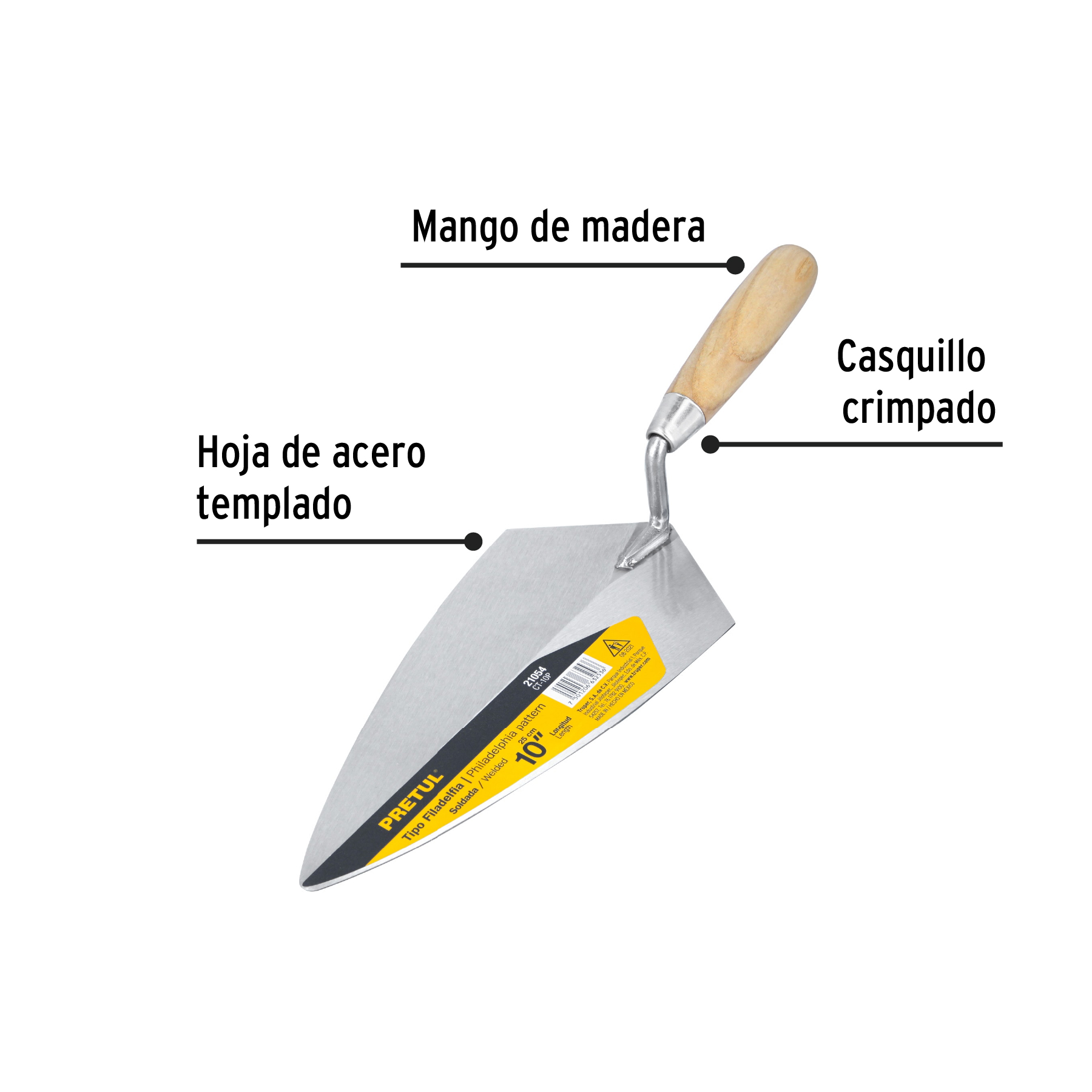 Cuchara para albañil 10′ tipo Filadelfia, PRETUL