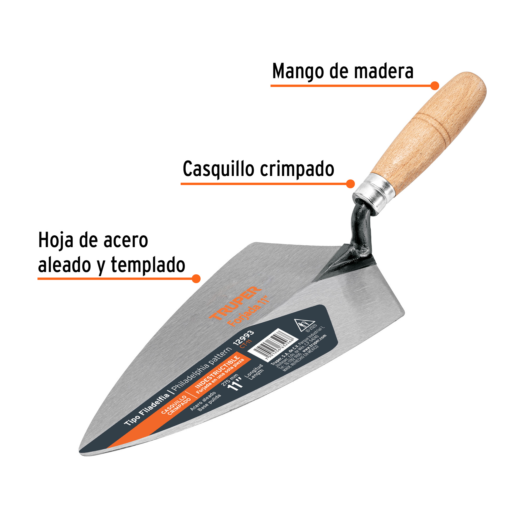 Cuchara para albañil 11′ forjada tipo Filadelfia, TRUPER