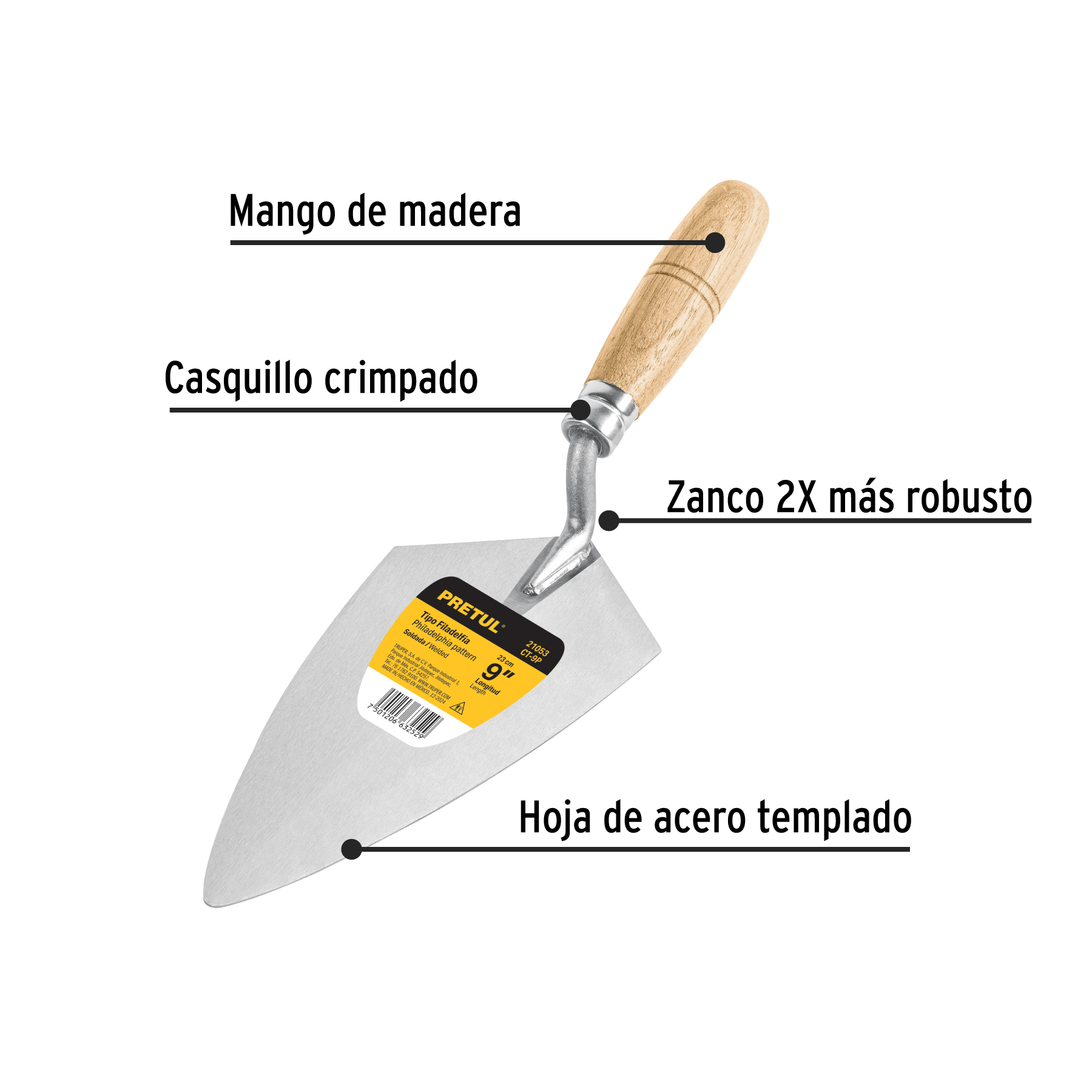 Cuchara para albañil 9′ tipo Filadelfia, PRETUL