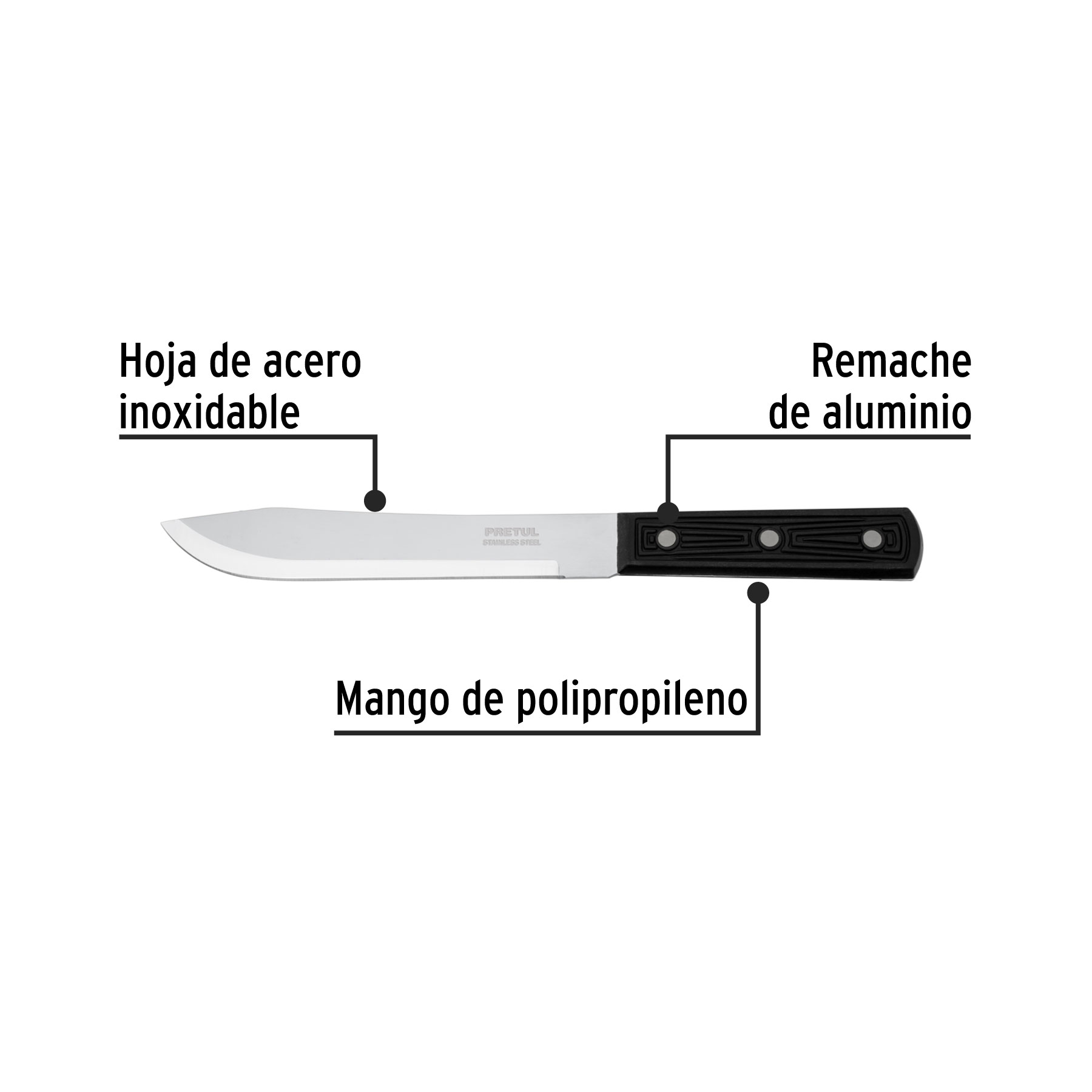 Cuchillo cebollero 7′ mango de polipropileno, Pretul