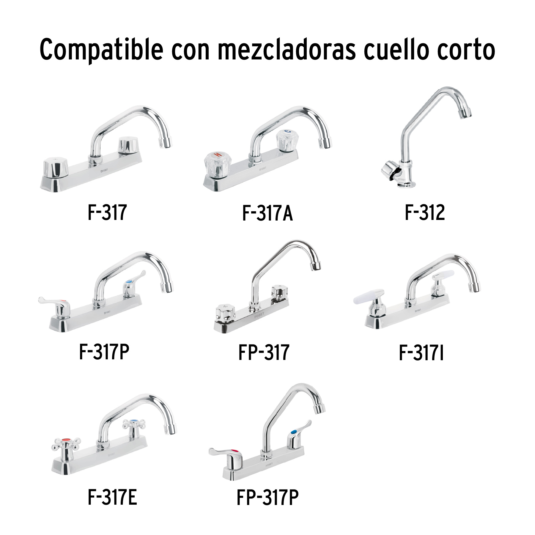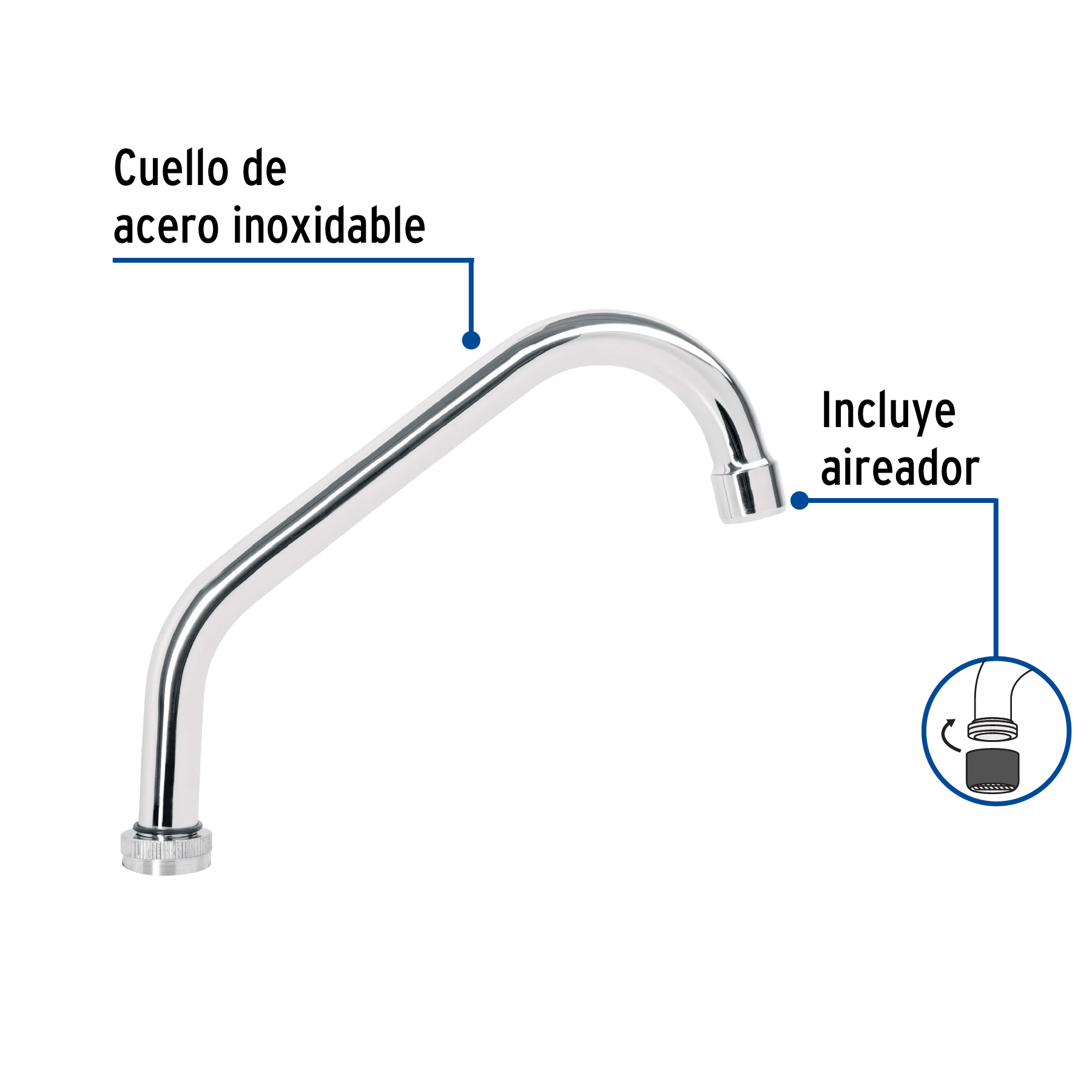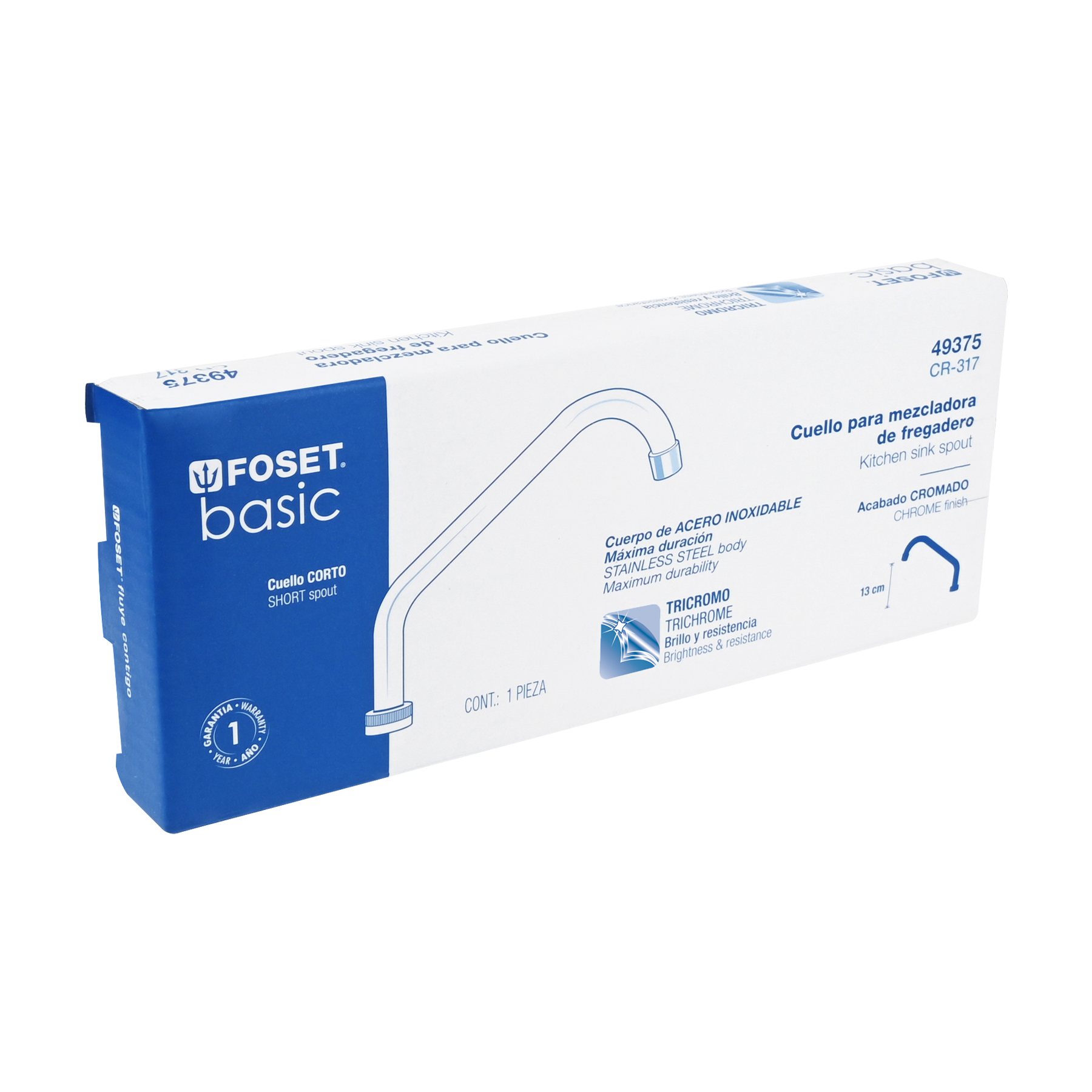 Cuello corto para mezcladora de fregadero, cromo, Basic