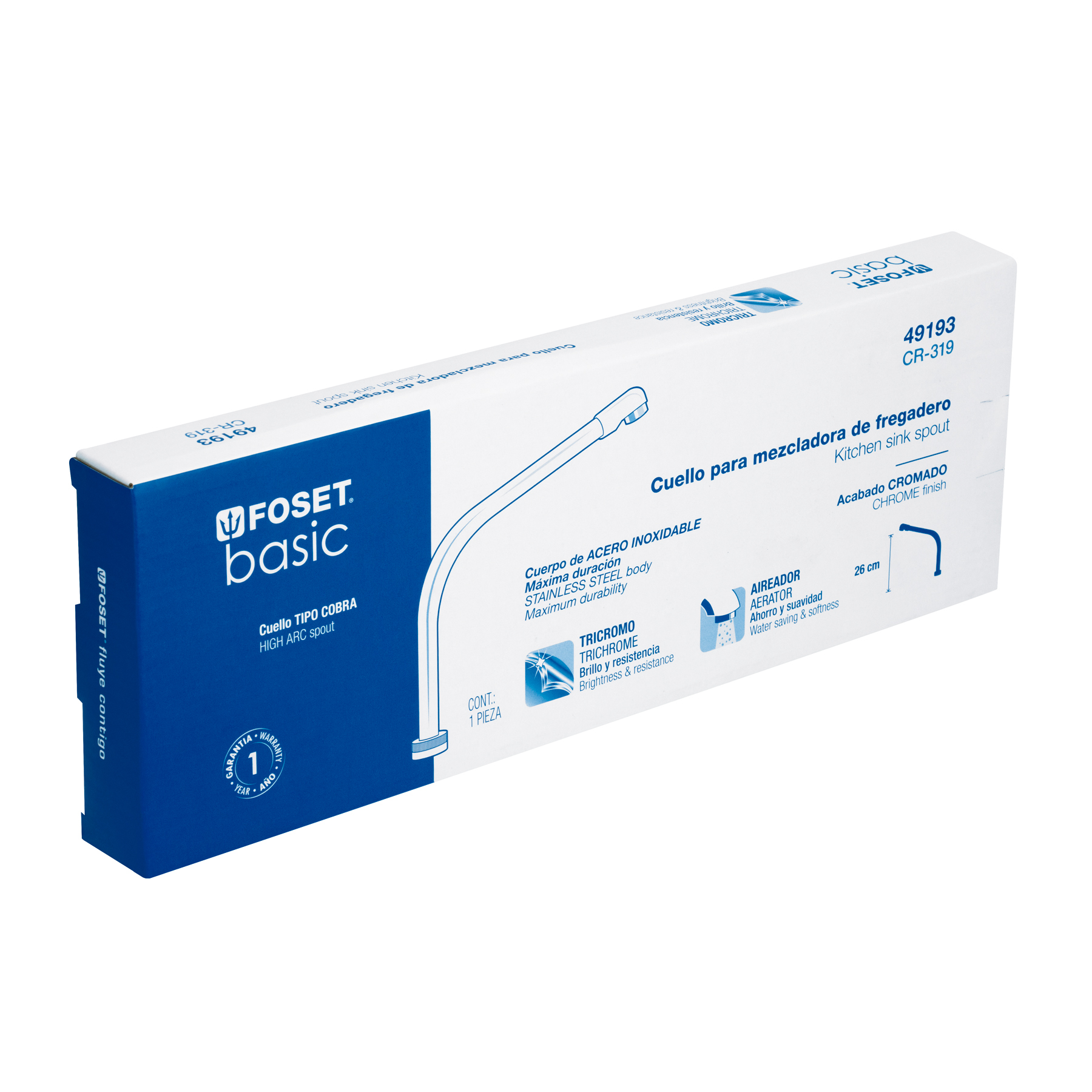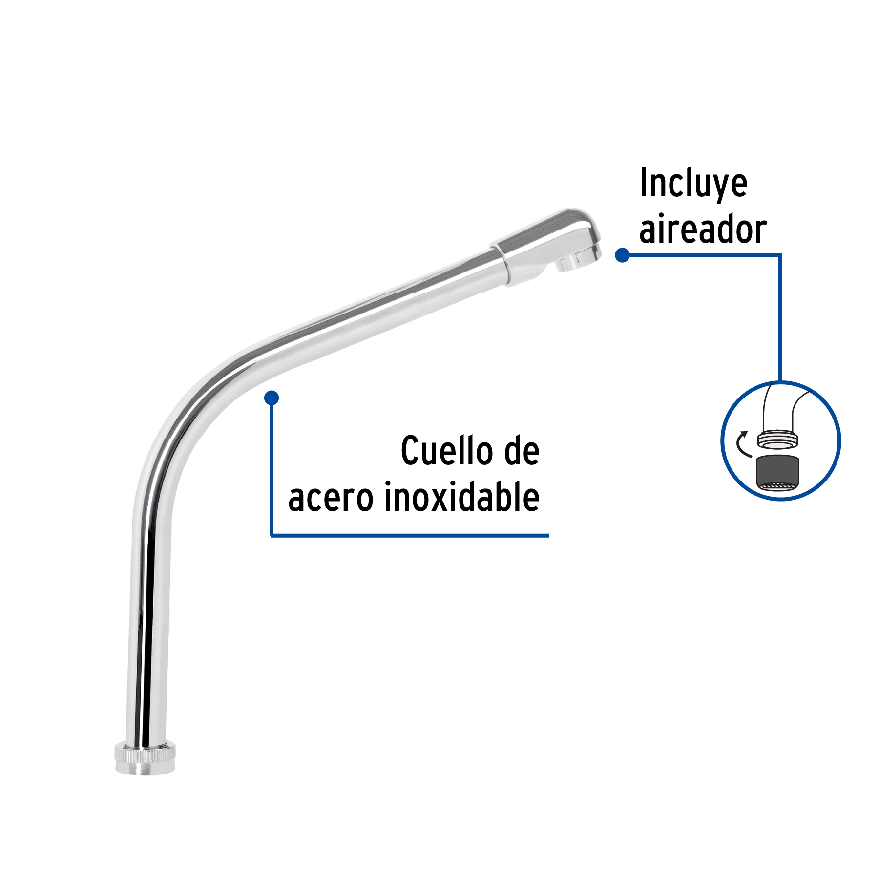 Cuello tipo cobra para mezcladora de fregadero, cromo, Basic