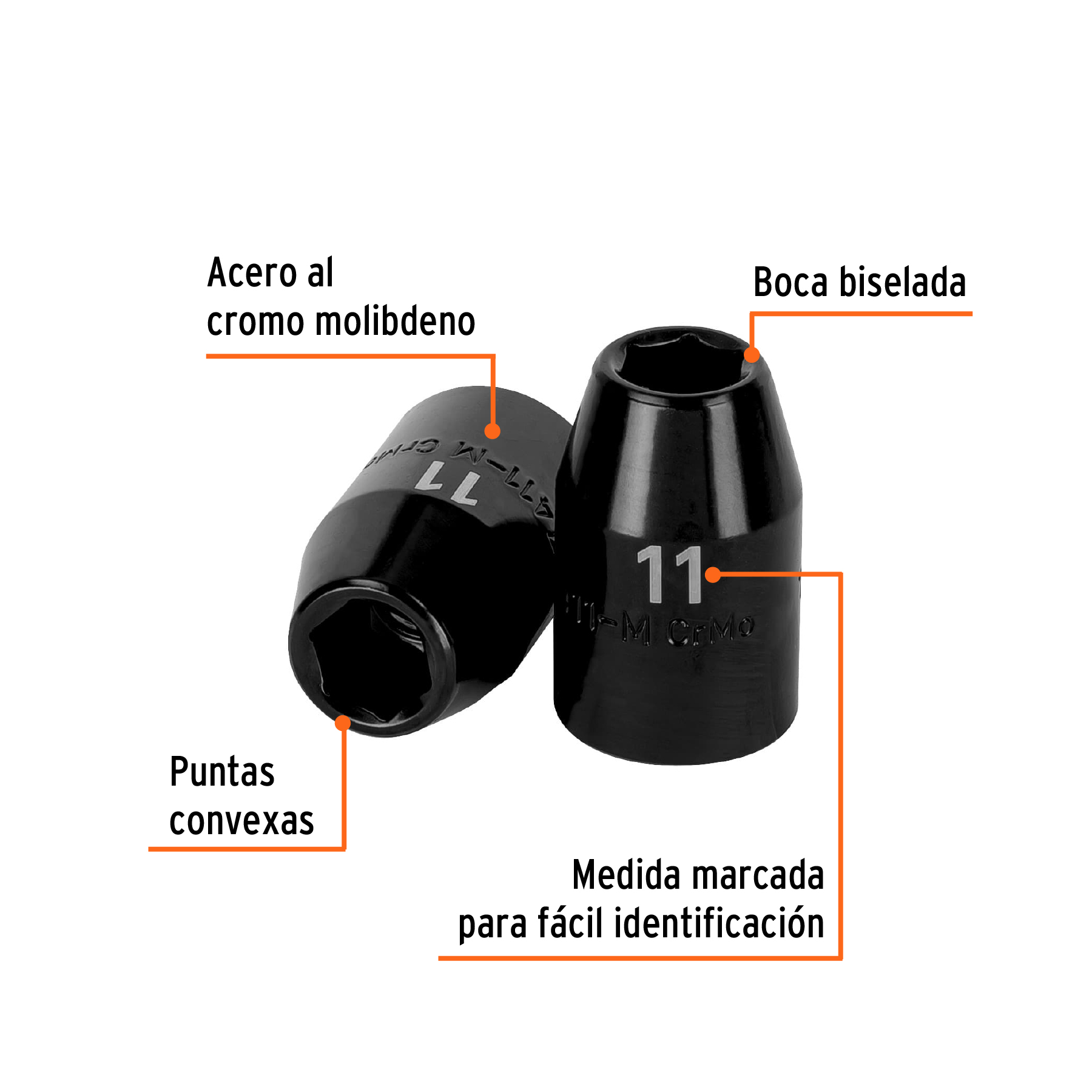 Dado cuadro 1/2′ de impacto 6 puntas de 11 mm, Truper