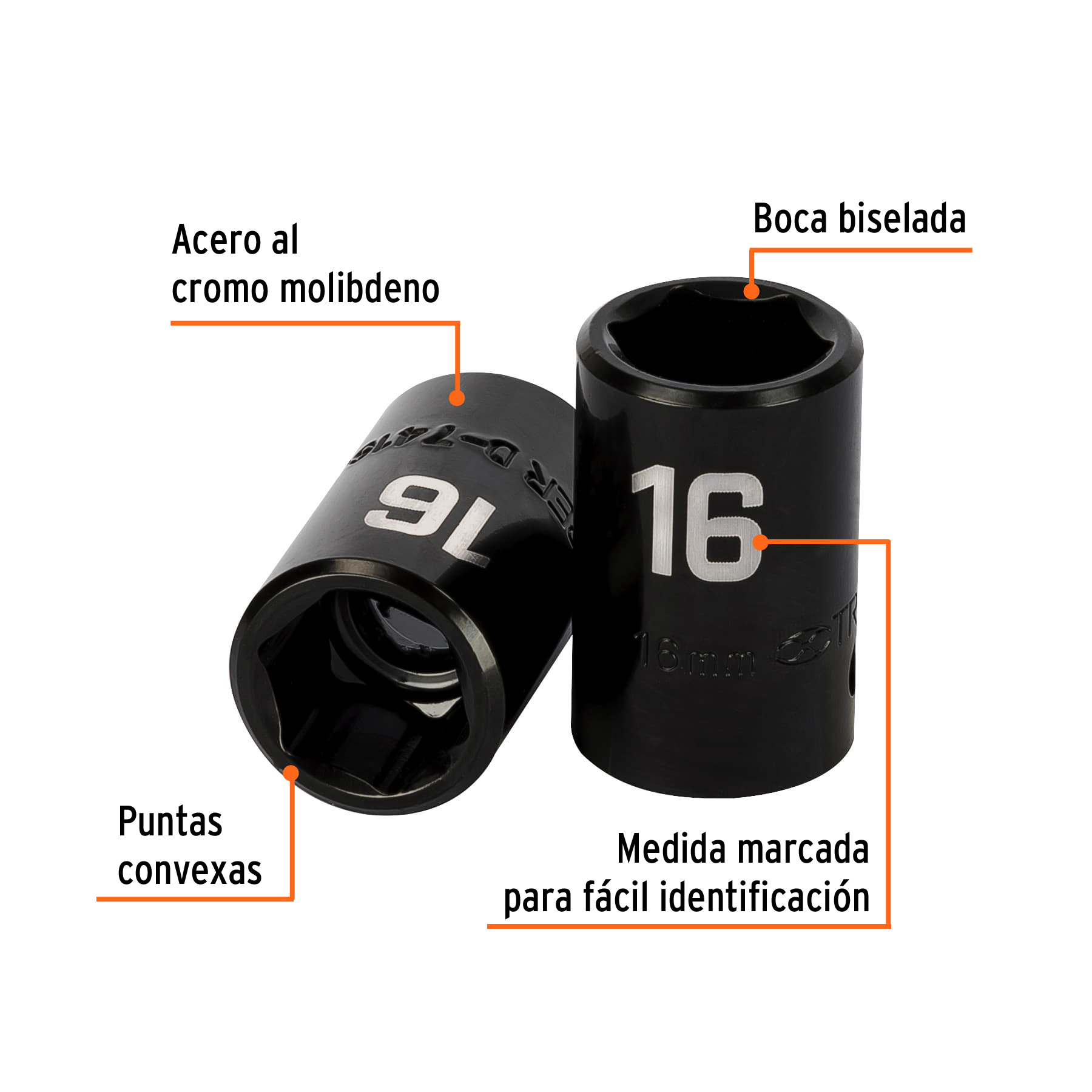 Dado cuadro 1/2′ de impacto 6 puntas de 16 mm, Truper