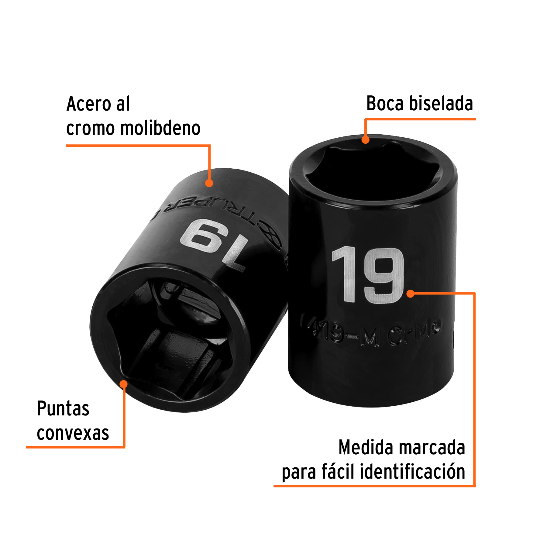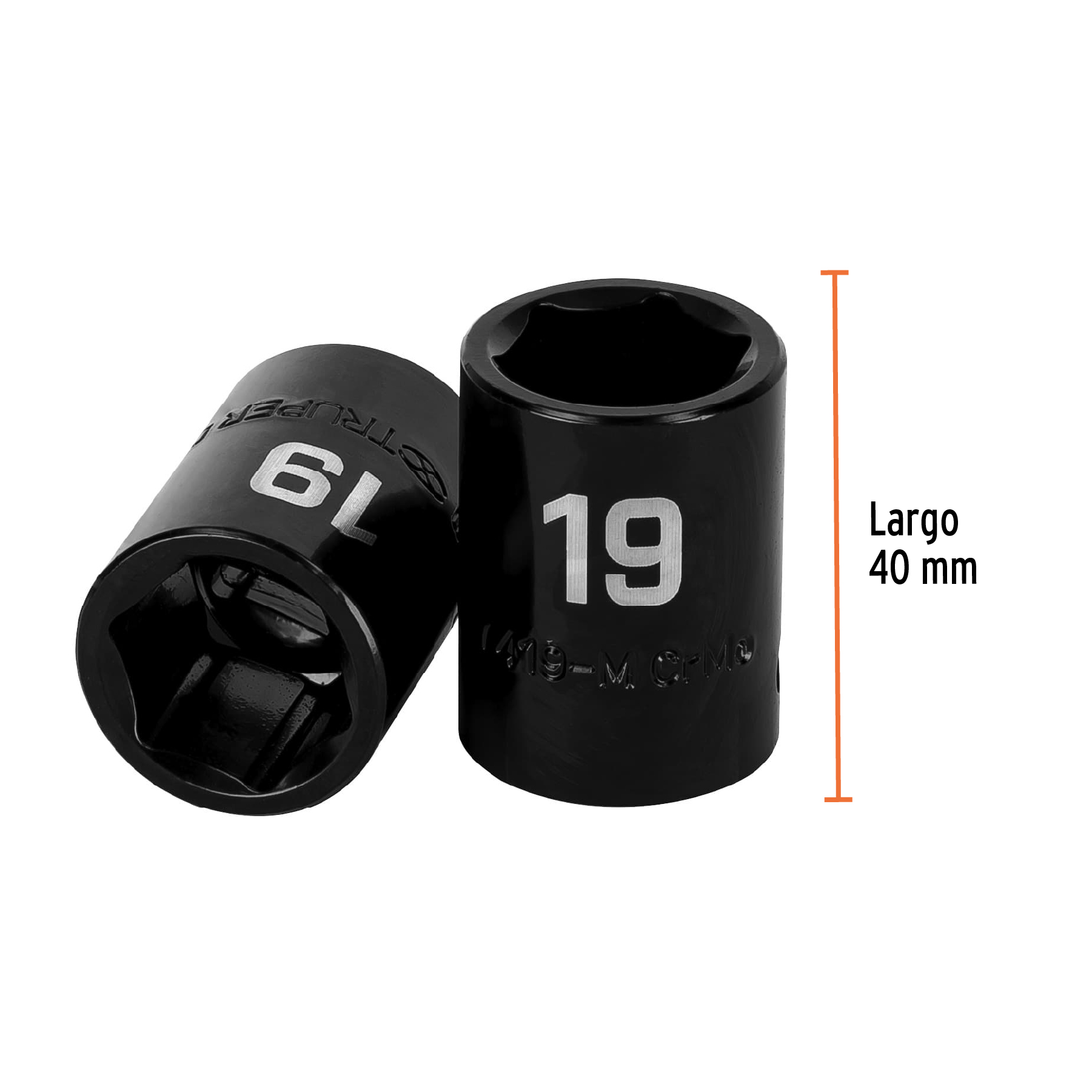 Dado cuadro 1/2′ de impacto 6 puntas de 19 mm, Truper
