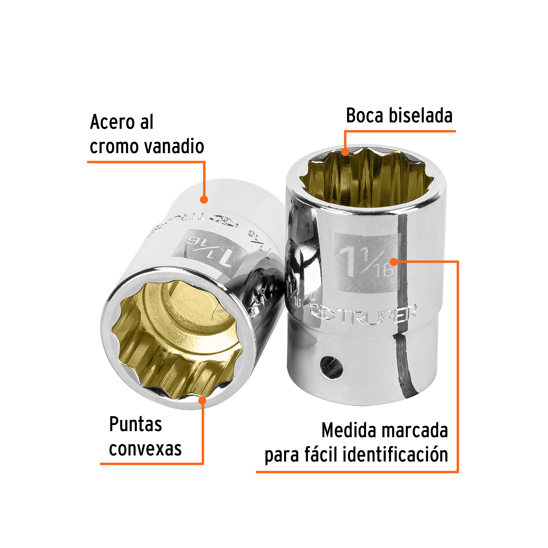 Dado de 1-1/16′, 12 puntas, cuadro 3/4′, Truper