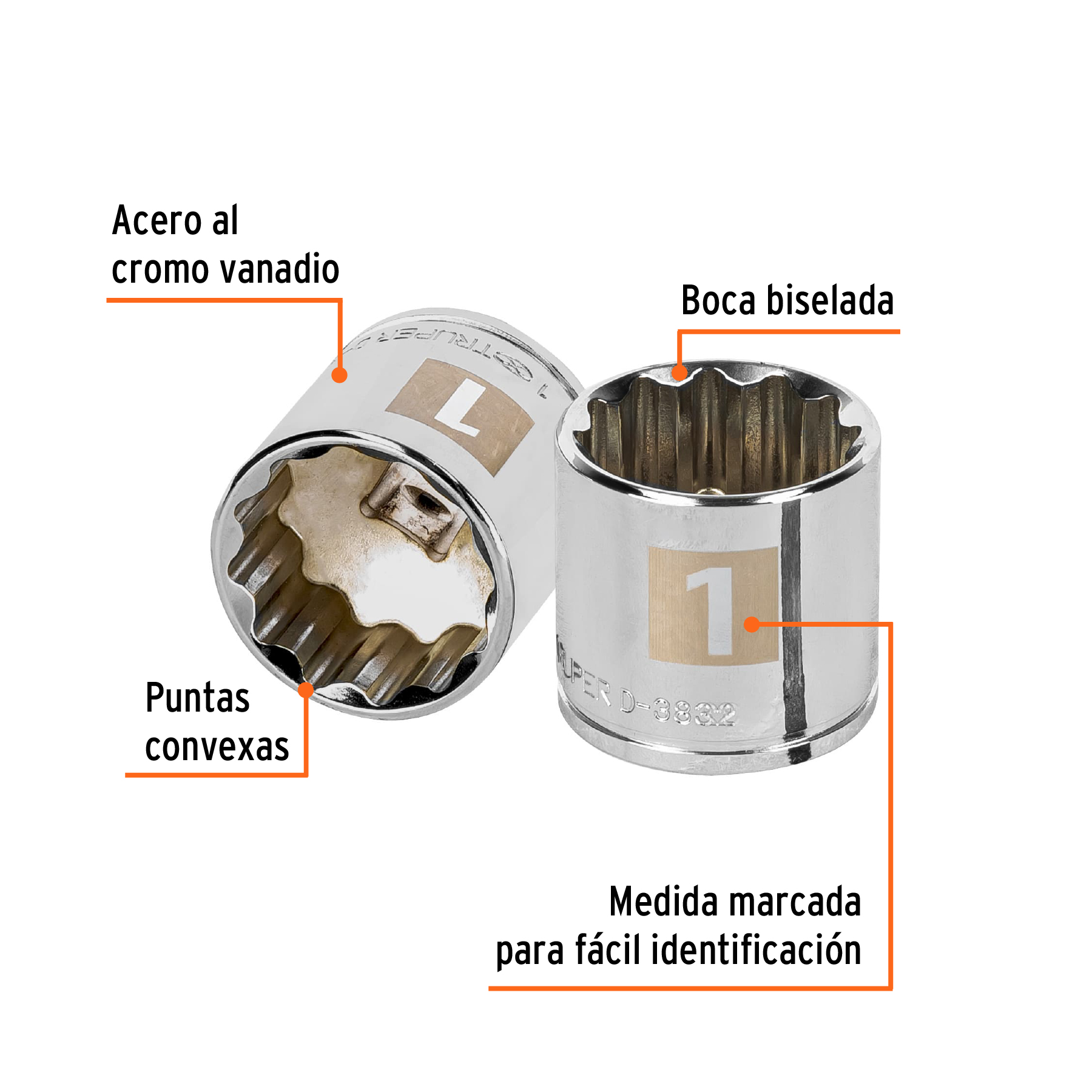Dado de 1′, 12 puntas, cuadro 3/8′, Truper