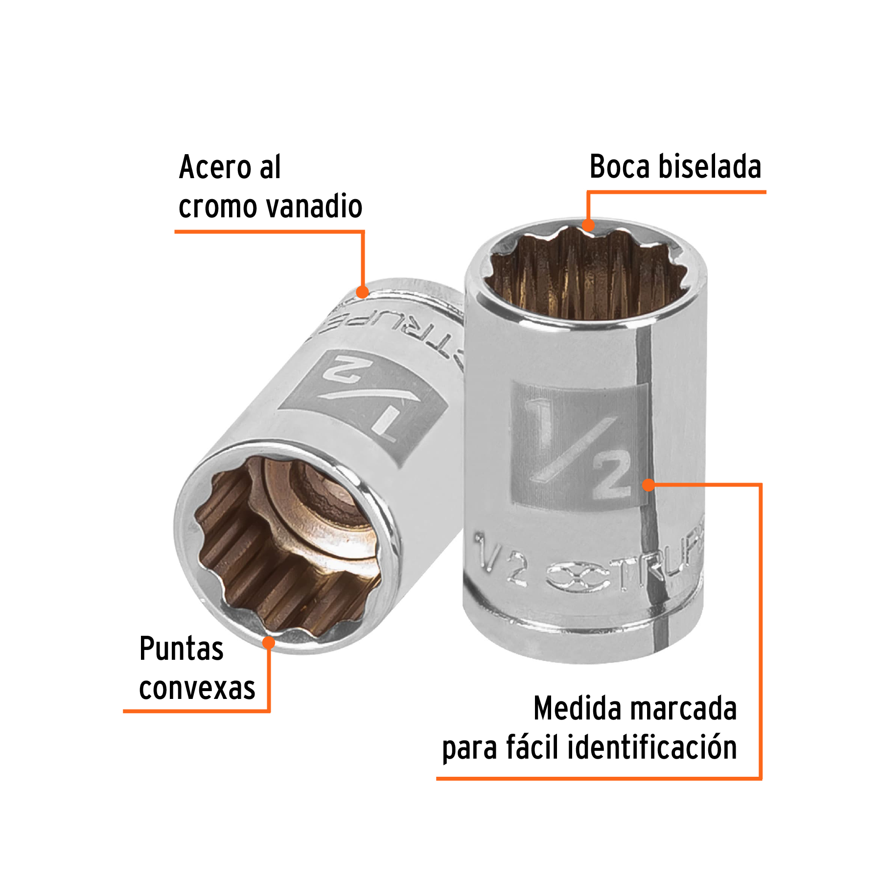 Boca con doce puntas para acoples cada 30° Sistema TRUPER-DRIVE que asegura y aumenta el torque sin dañar tuercas ni cabezas de tornillos