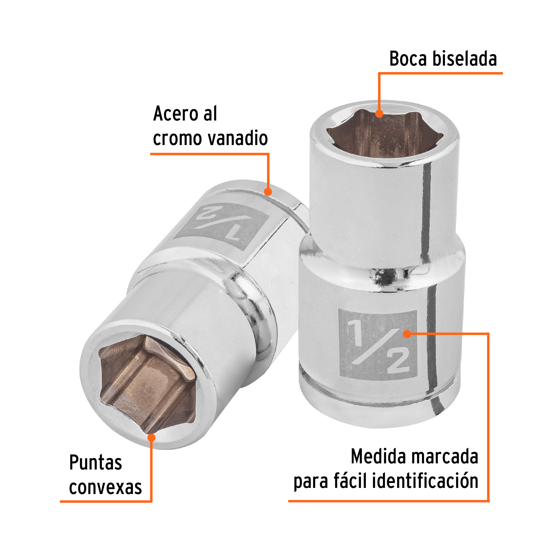 Dado de 1/2′, 6 puntas, cuadro 1/2′, Truper