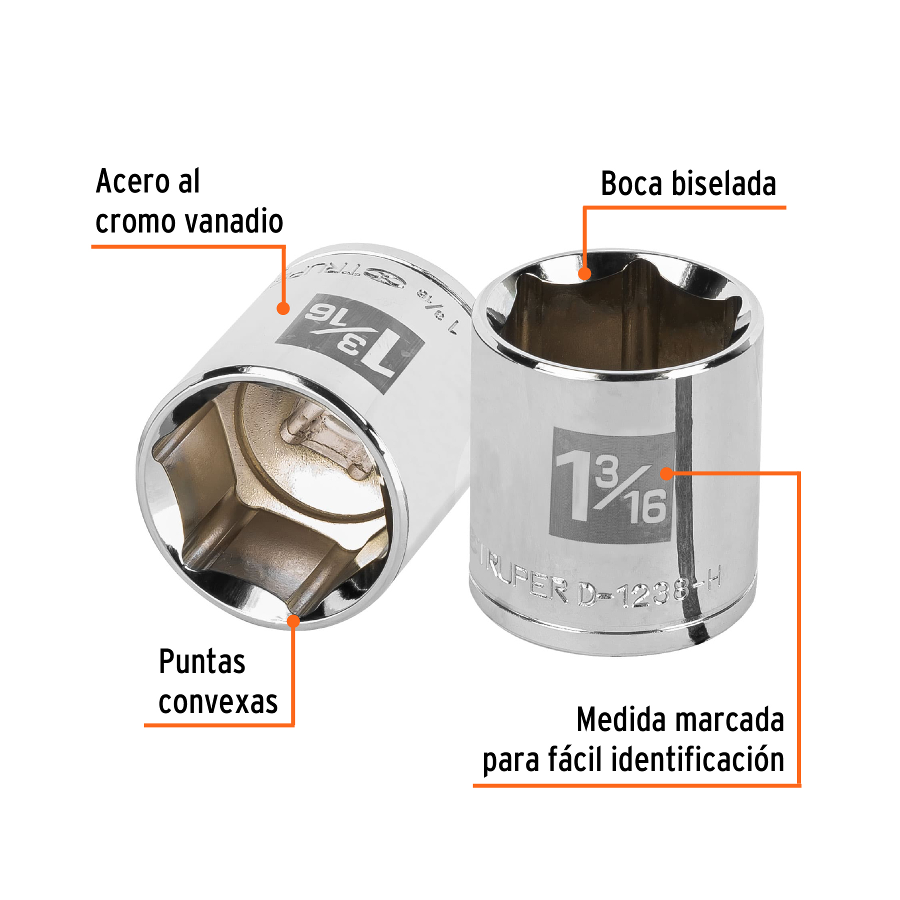 Dado de 1-3/16′, 6 puntas, cuadro 1/2′, Truper