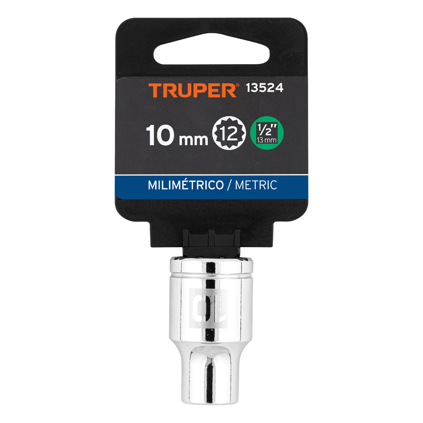 Dado de 10 mm, 12 puntas, cuadro 1/2′, Truper