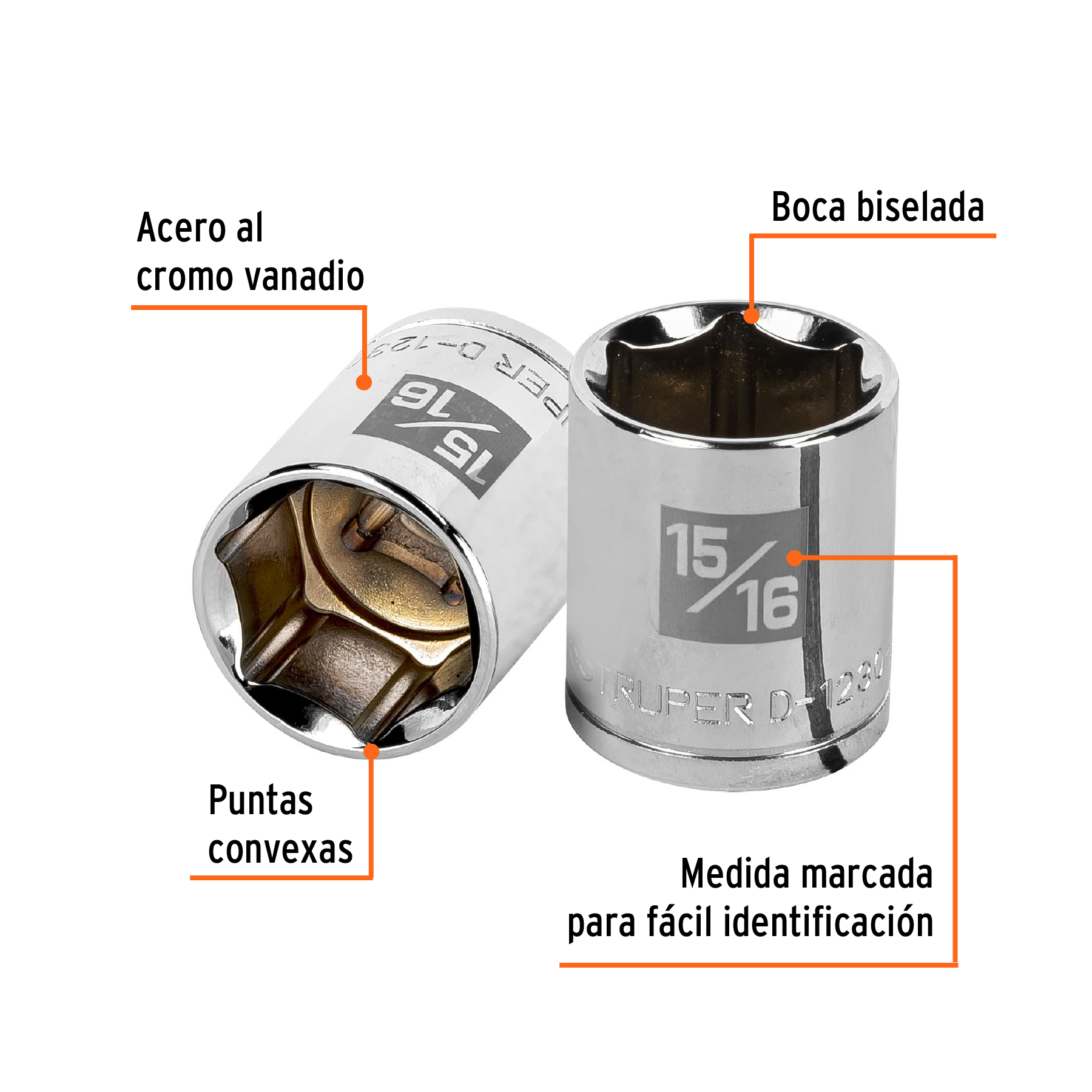 Dado de 15/16′, 6 puntas, cuadro 1/2′, Truper