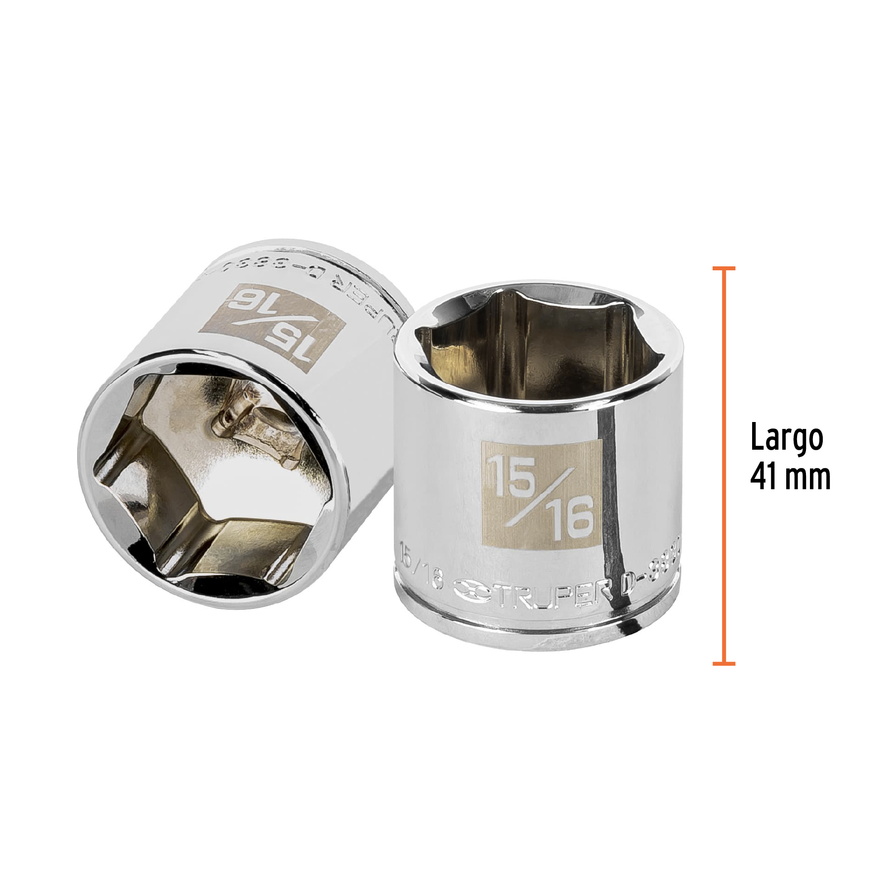 Dado de 15/16′, 6 puntas, cuadro 3/8′, Truper