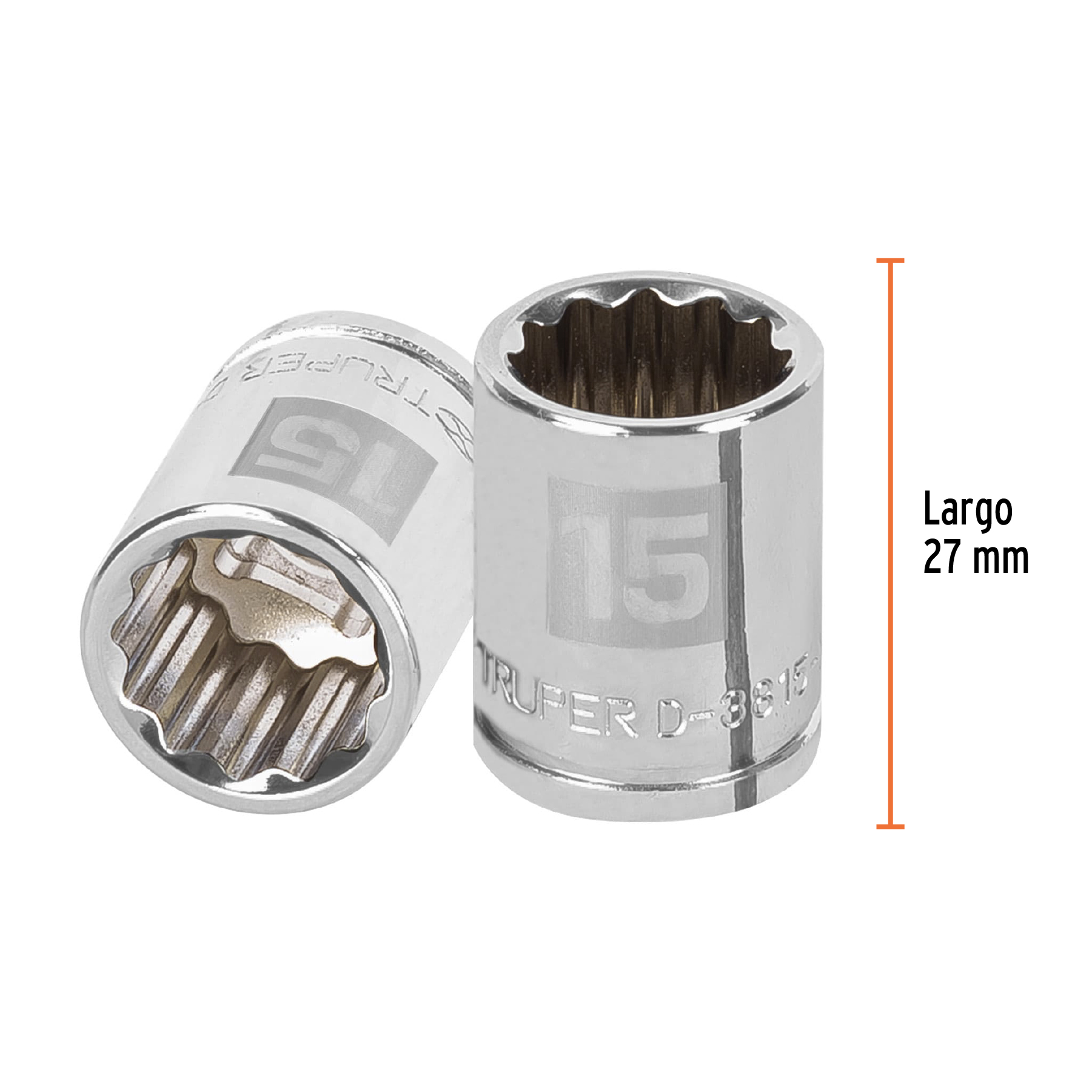 Dado de 15 mm, 12 puntas, cuadro 3/8′, Truper