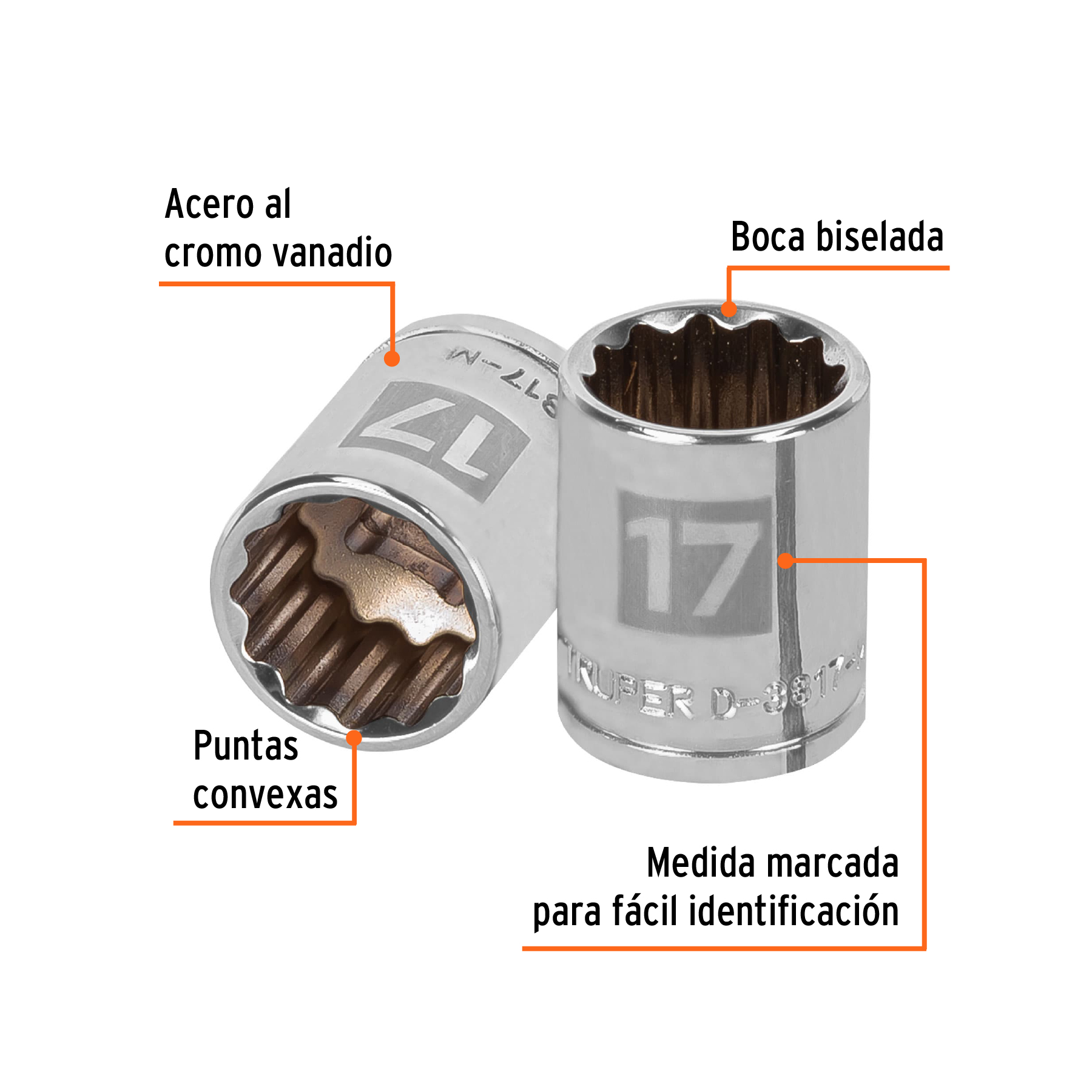 Dado de 17 mm, 12 puntas, cuadro 3/8′, Truper