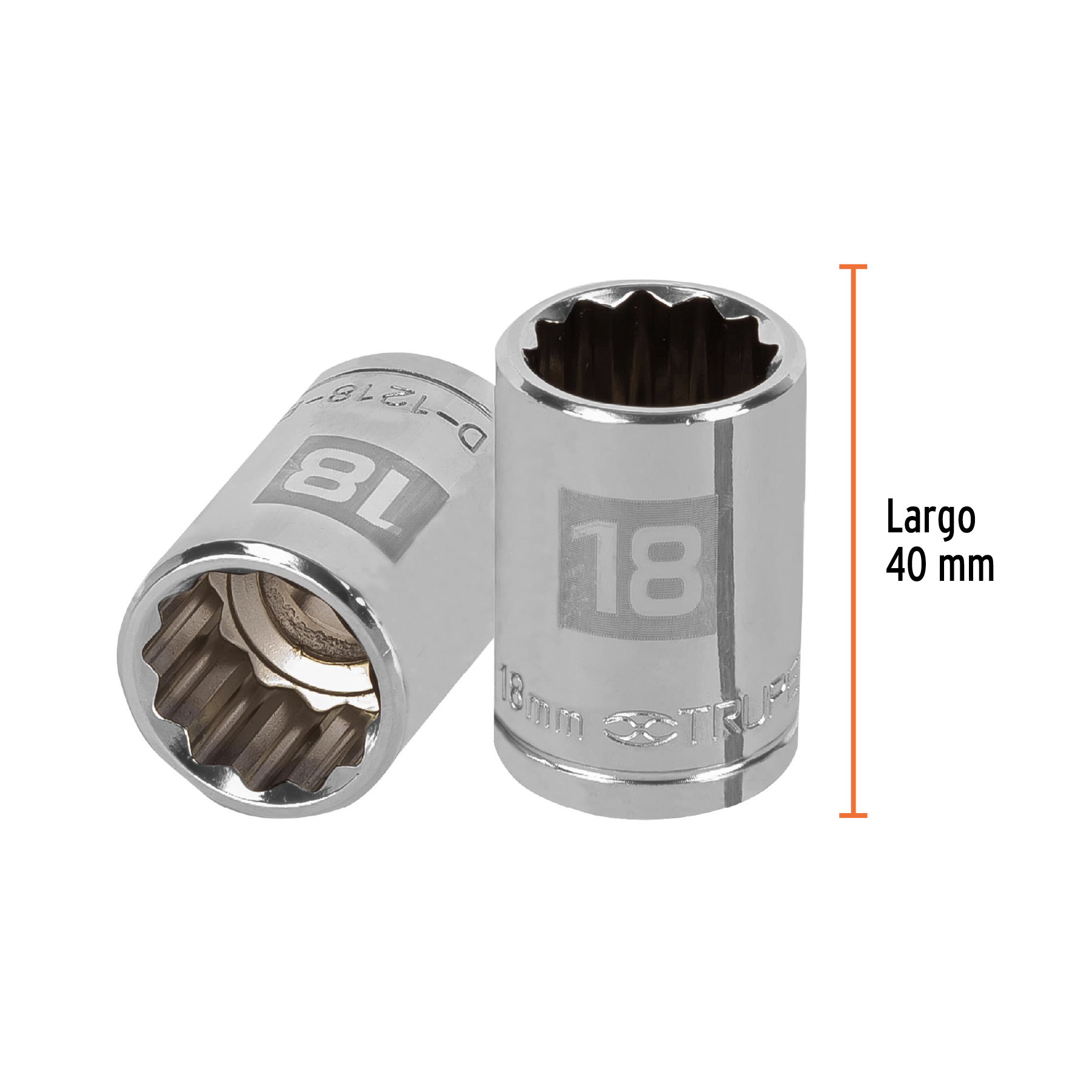 Dado de 18 mm, 12 puntas, cuadro 1/2′, Truper