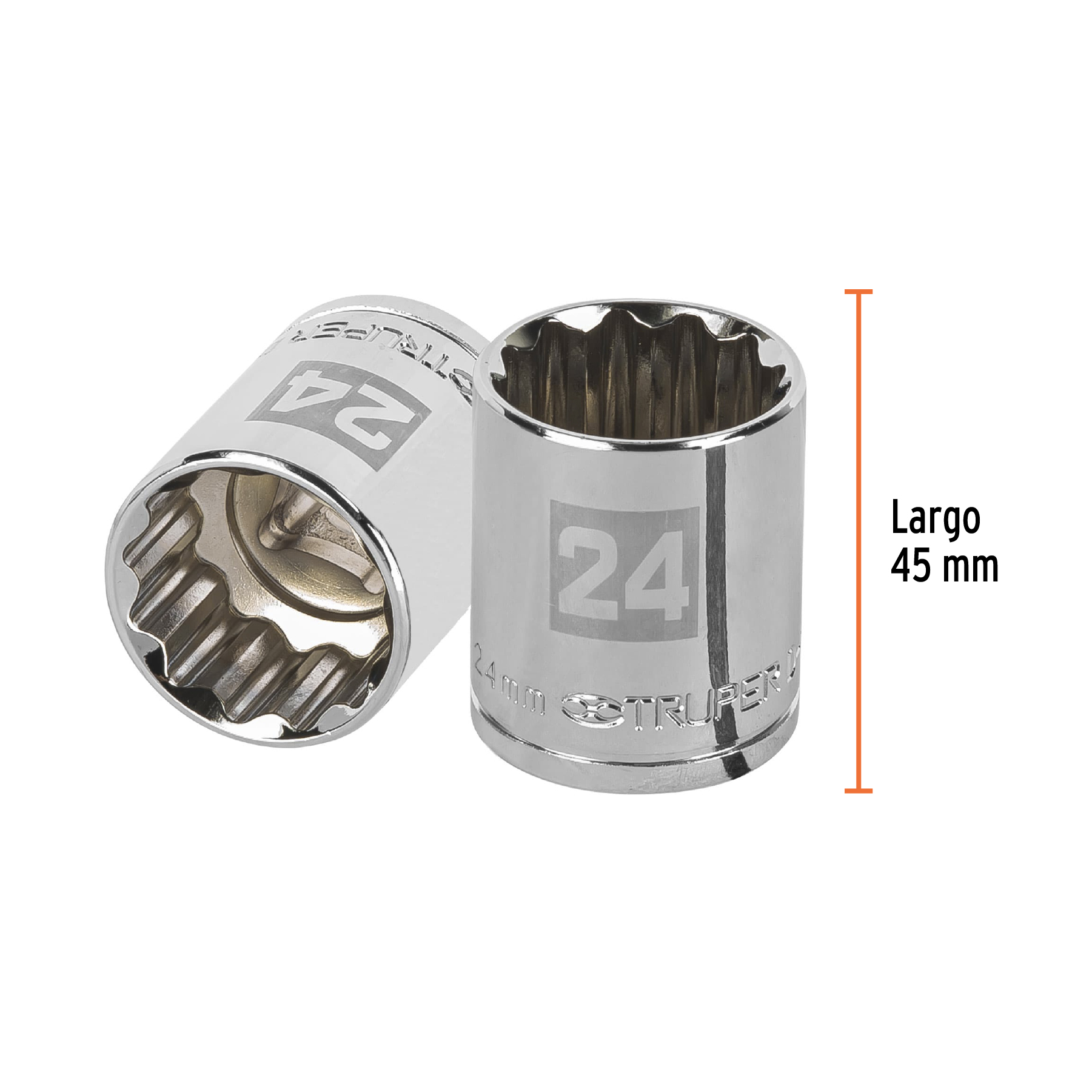 Dado de 24 mm, 12 puntas, cuadro 1/2′, Truper