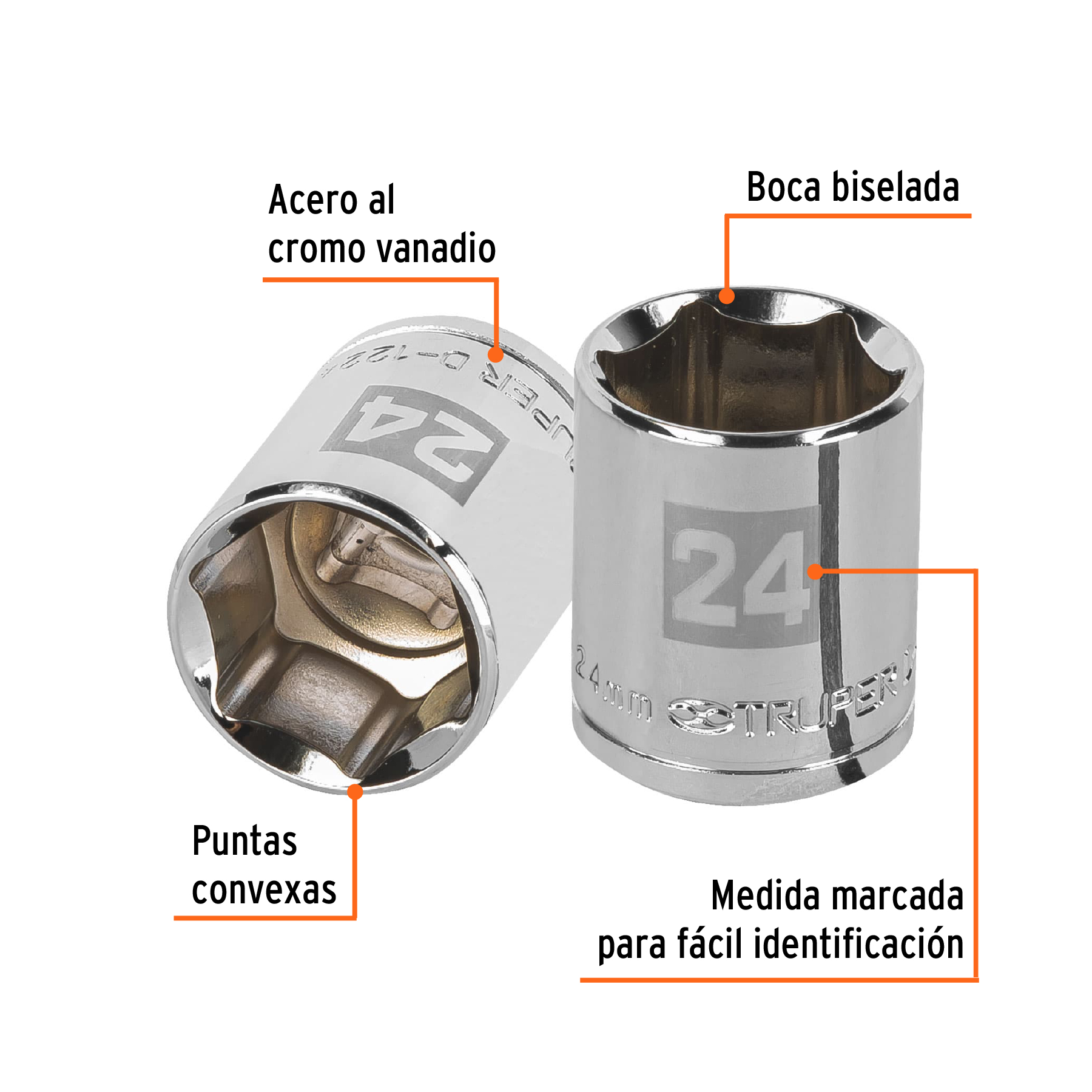 Dado de 24 mm, 6 puntas, cuadro 1/2′, Truper