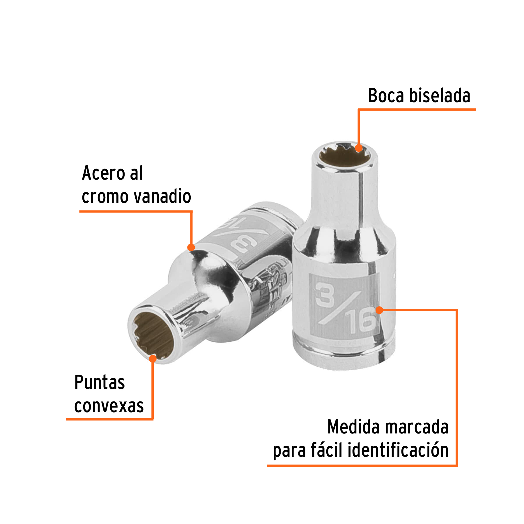 Dado de 3/16′, 12 puntas, cuadro 1/4′, Truper