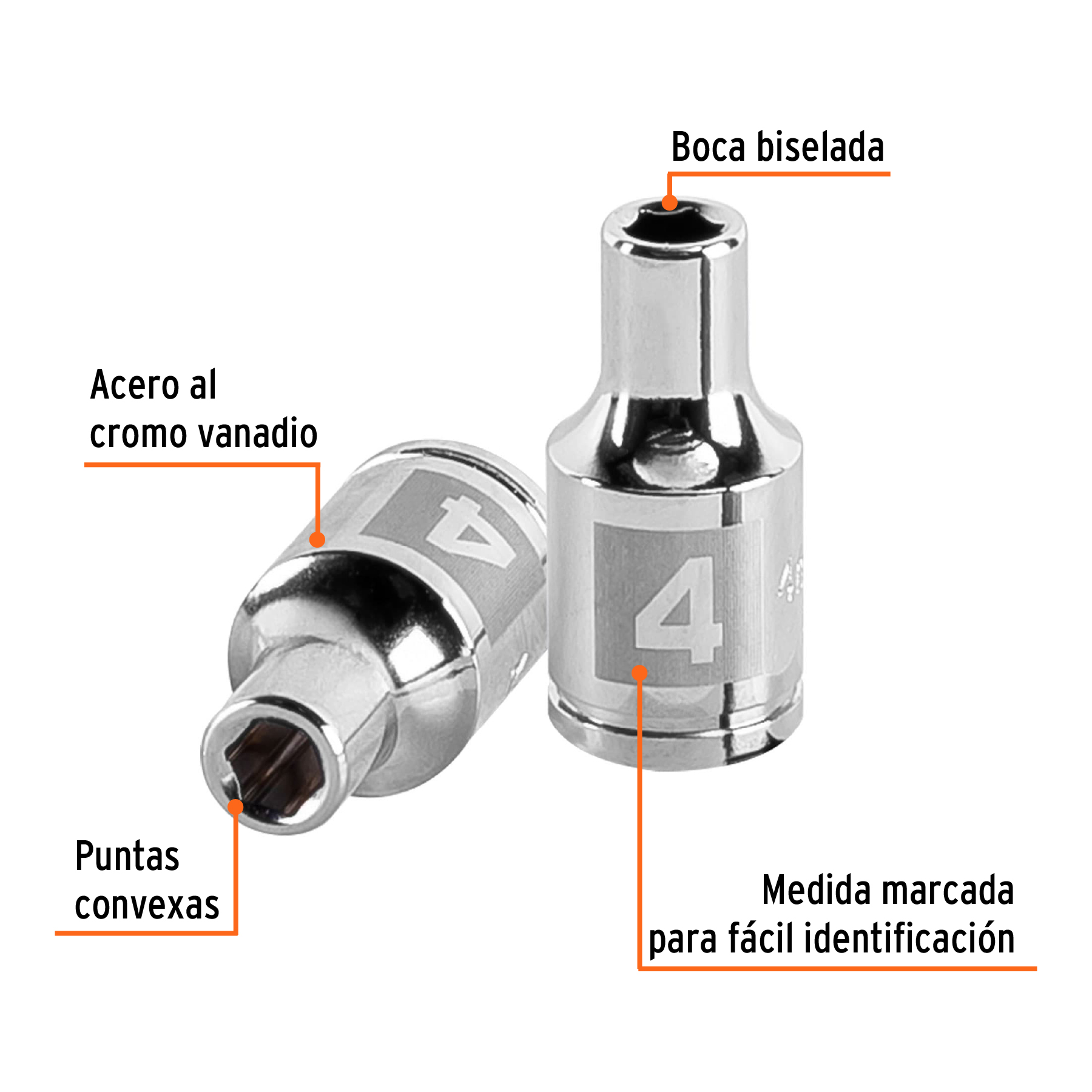 Dado de 4 mm, 6 puntas, cuadro 1/4′, Truper
