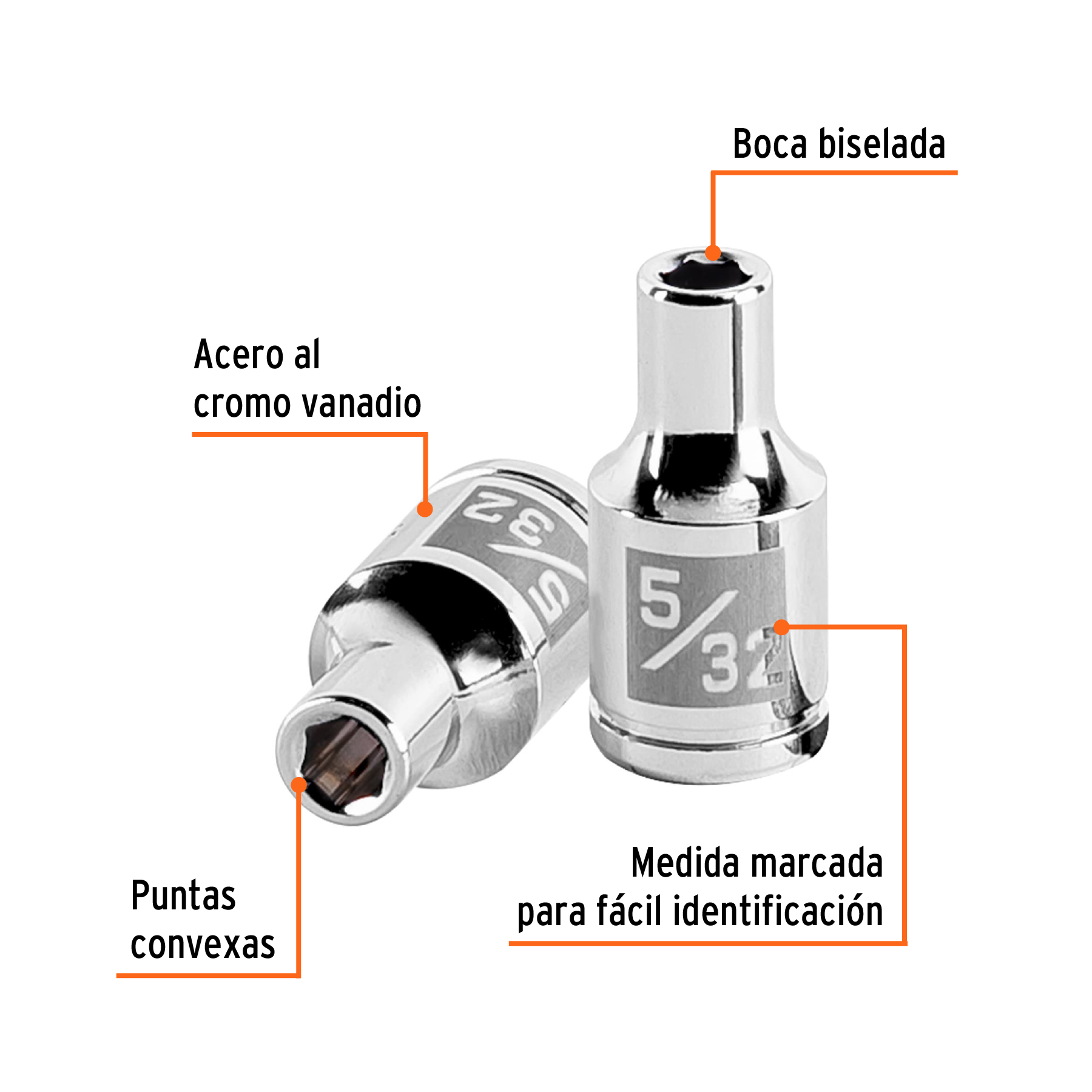 Dado de 5/32′, 6 puntas, cuadro 1/4′, Truper