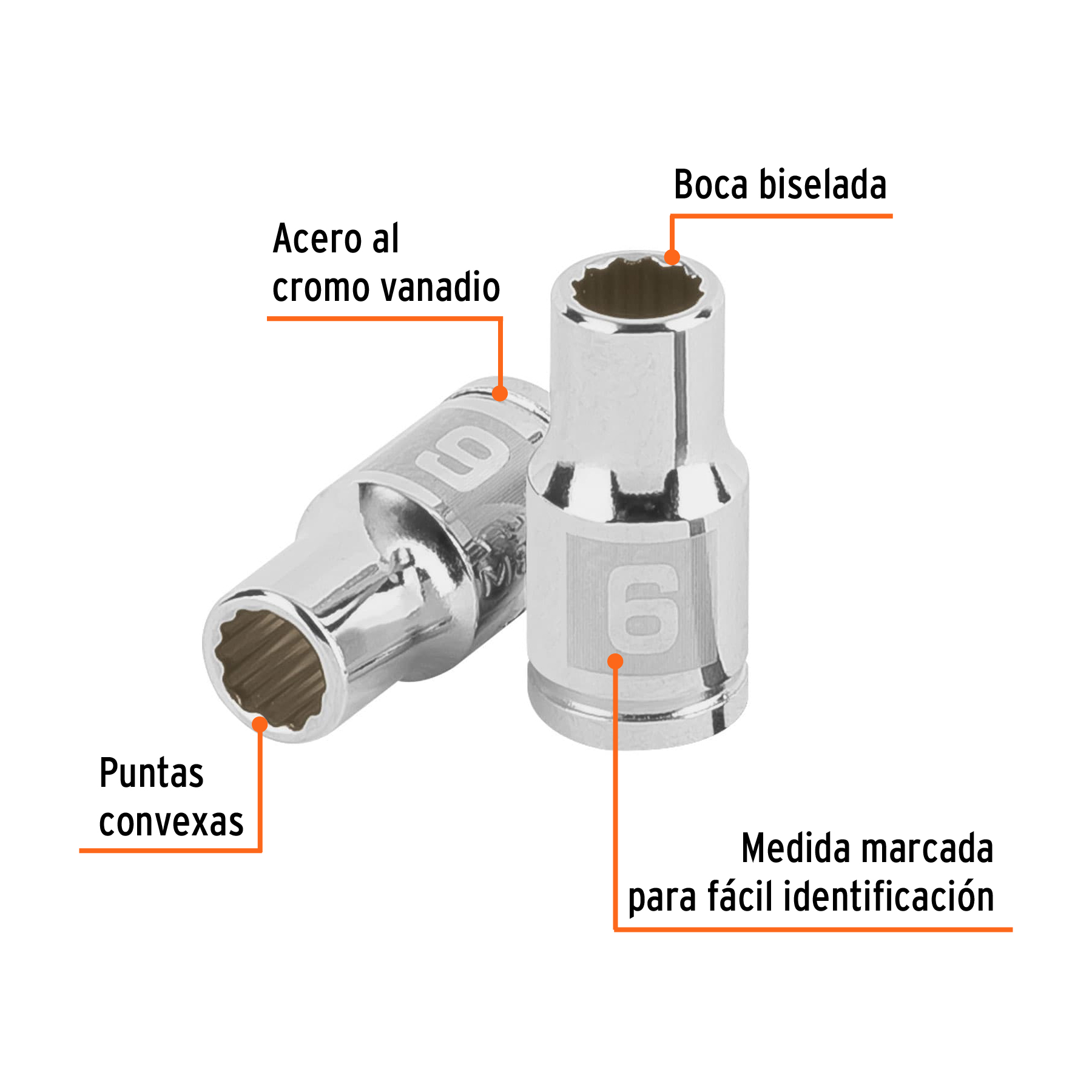 Dado de 6 mm, 12 puntas, cuadro 1/4′, Truper