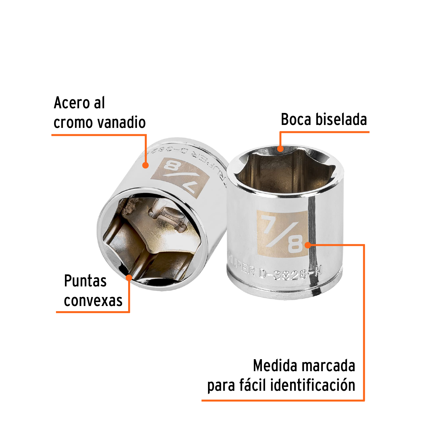 Dado de 7/8′, 6 puntas, cuadro 3/8′, Truper