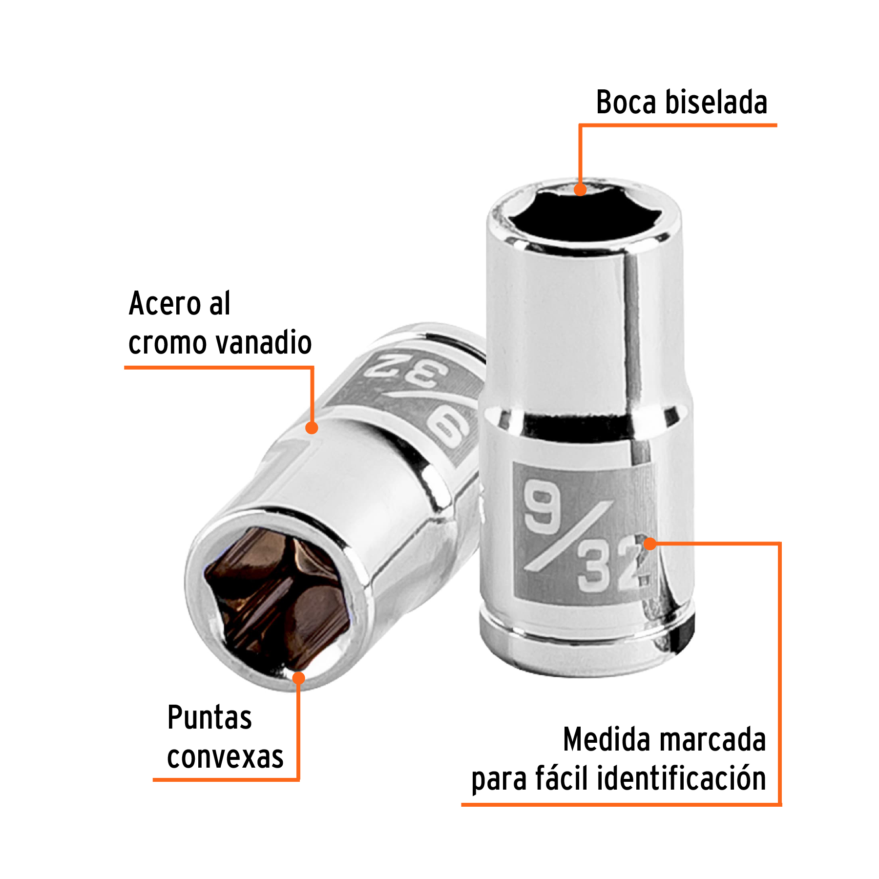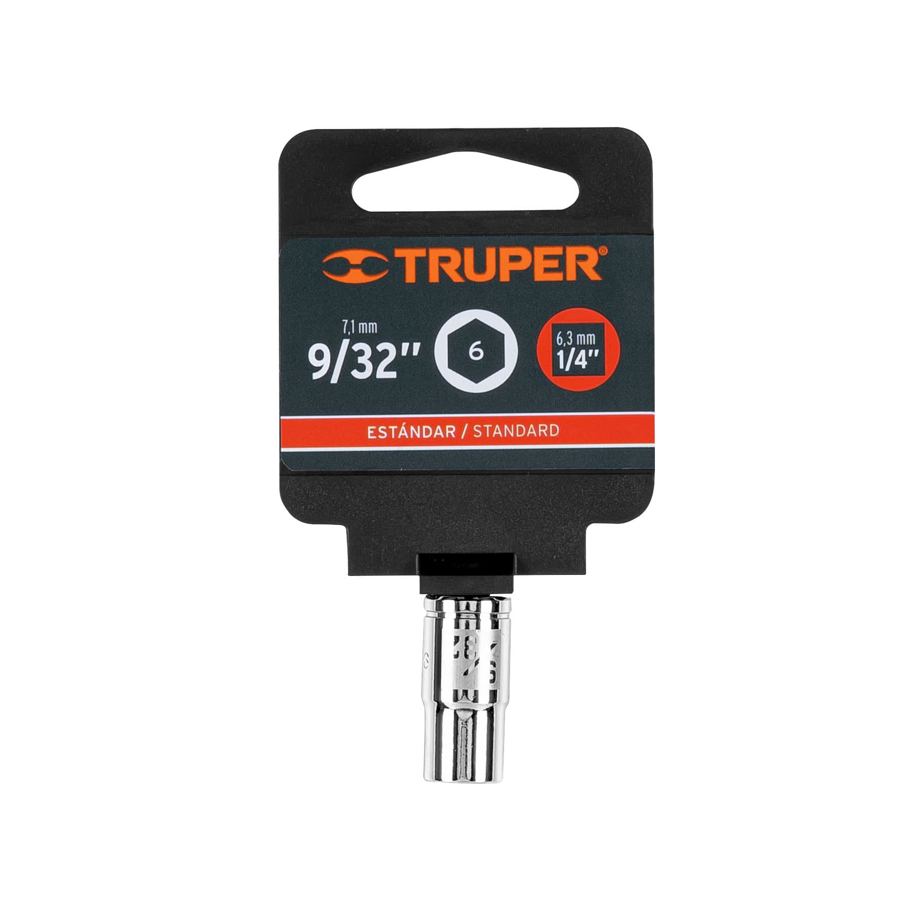 Dado de 9/32′, 6 puntas, cuadro 1/4′, Truper