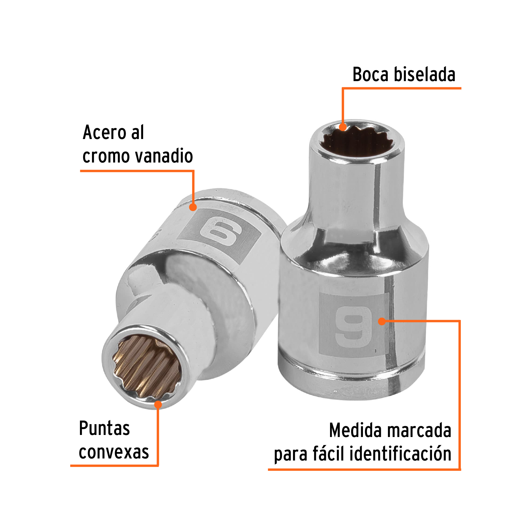 Dado de 9 mm, 12 puntas, cuadro 1/2′, Truper