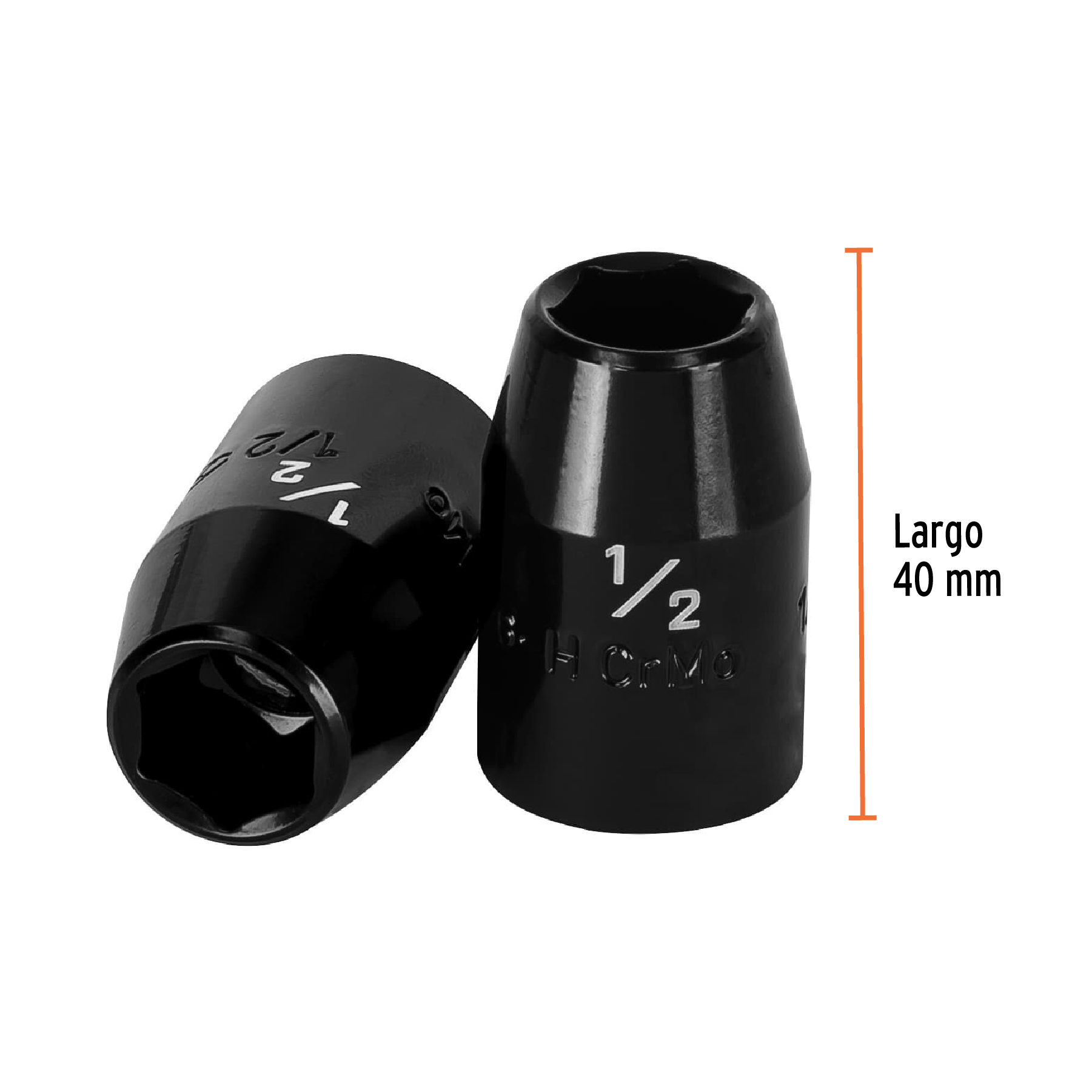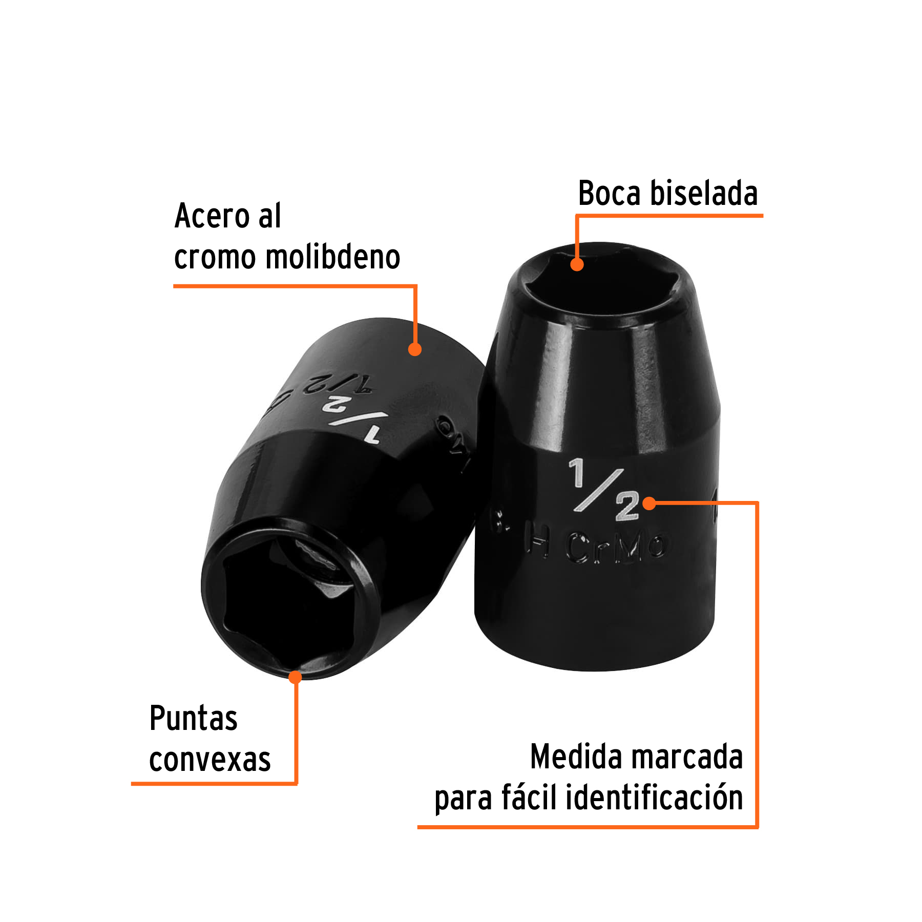 Dado de impacto de 1/2′, 6 puntas, cuadro 1/2′, Truper