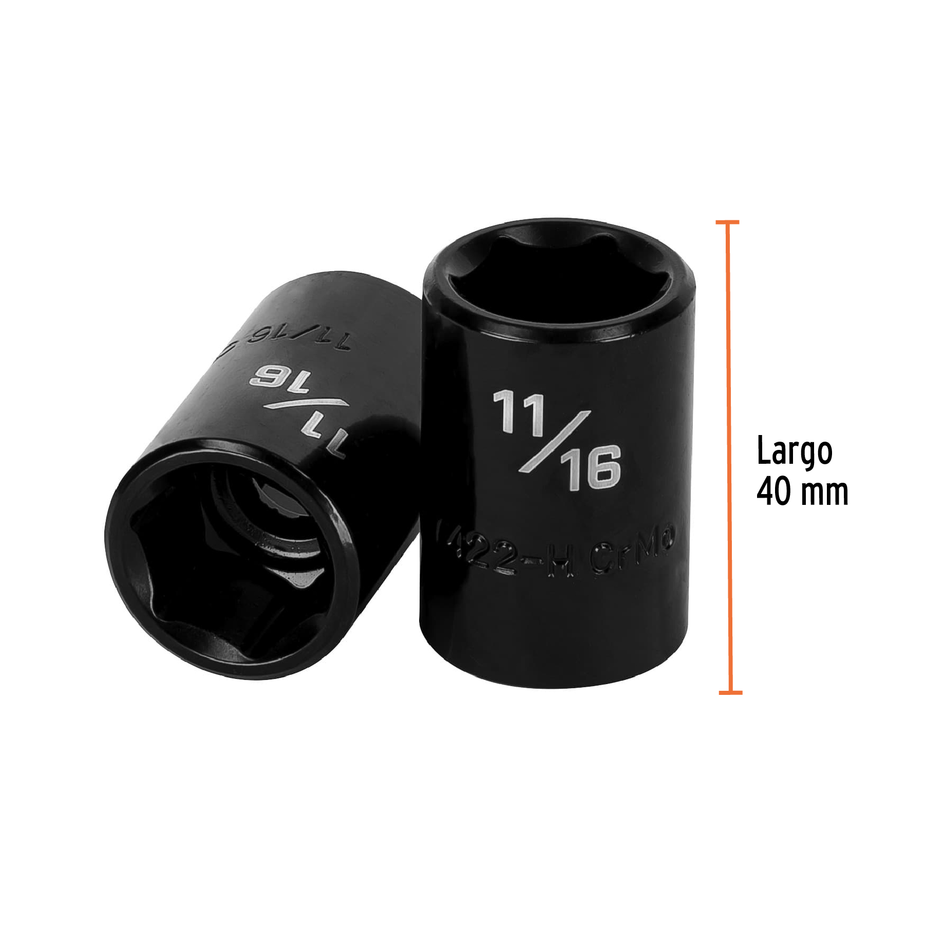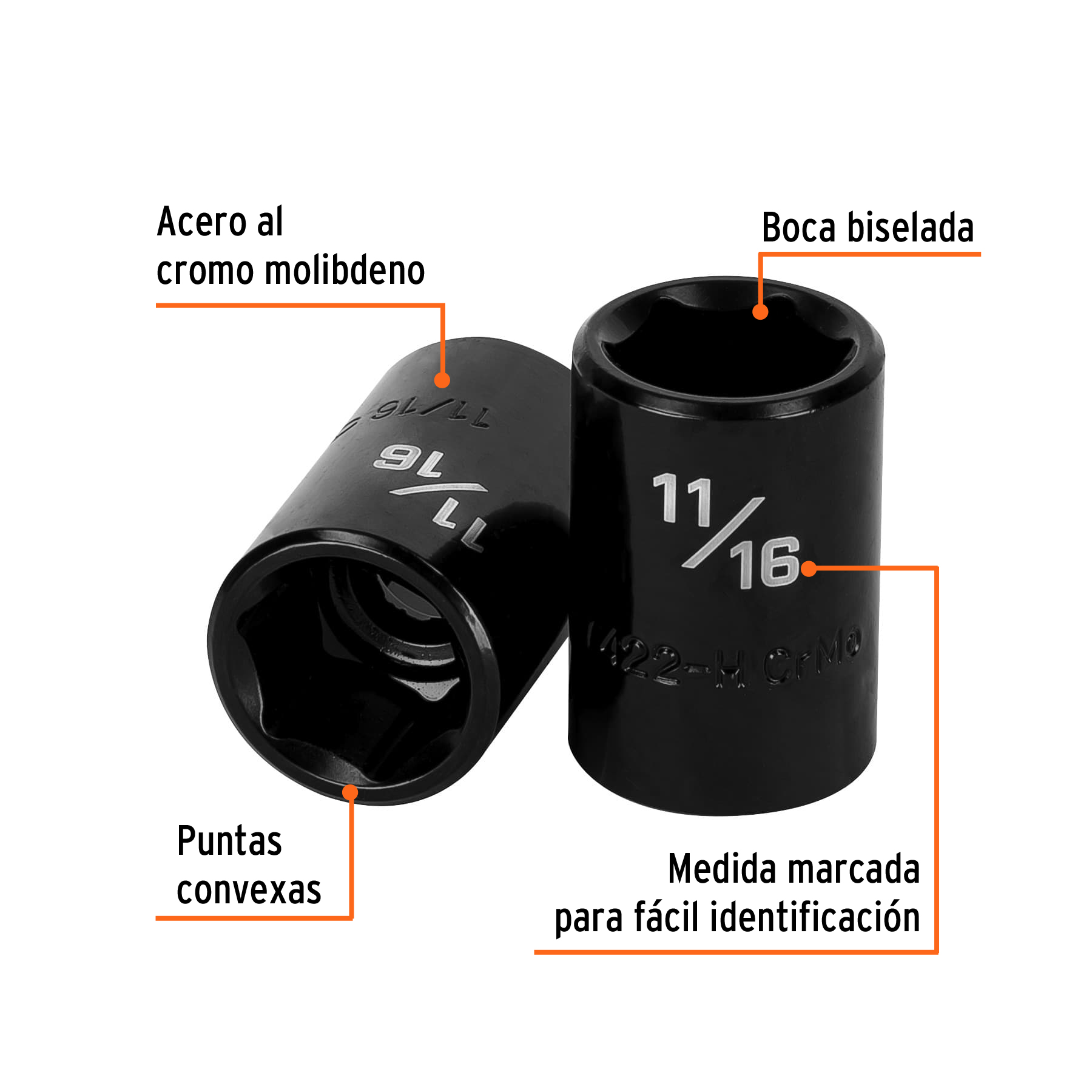Dado de impacto de 11/16′, 6 puntas, cuadro 1/2′, Truper