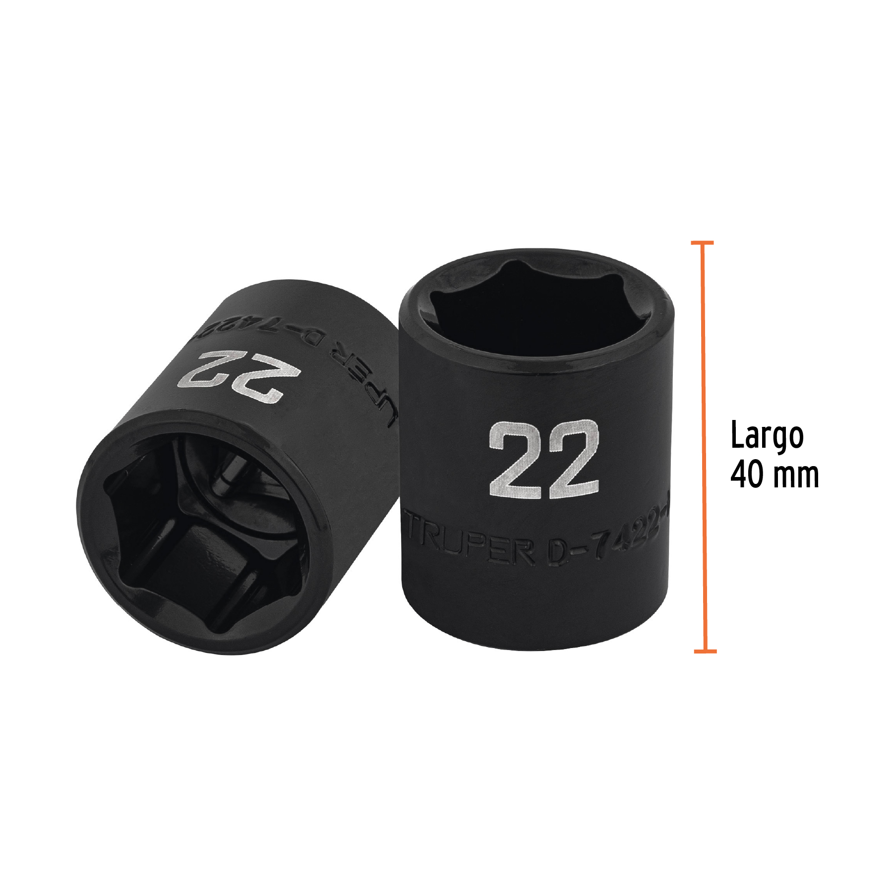 Dado de impacto de 22 mm, 6 puntas, cuadro 1/2′, Truper