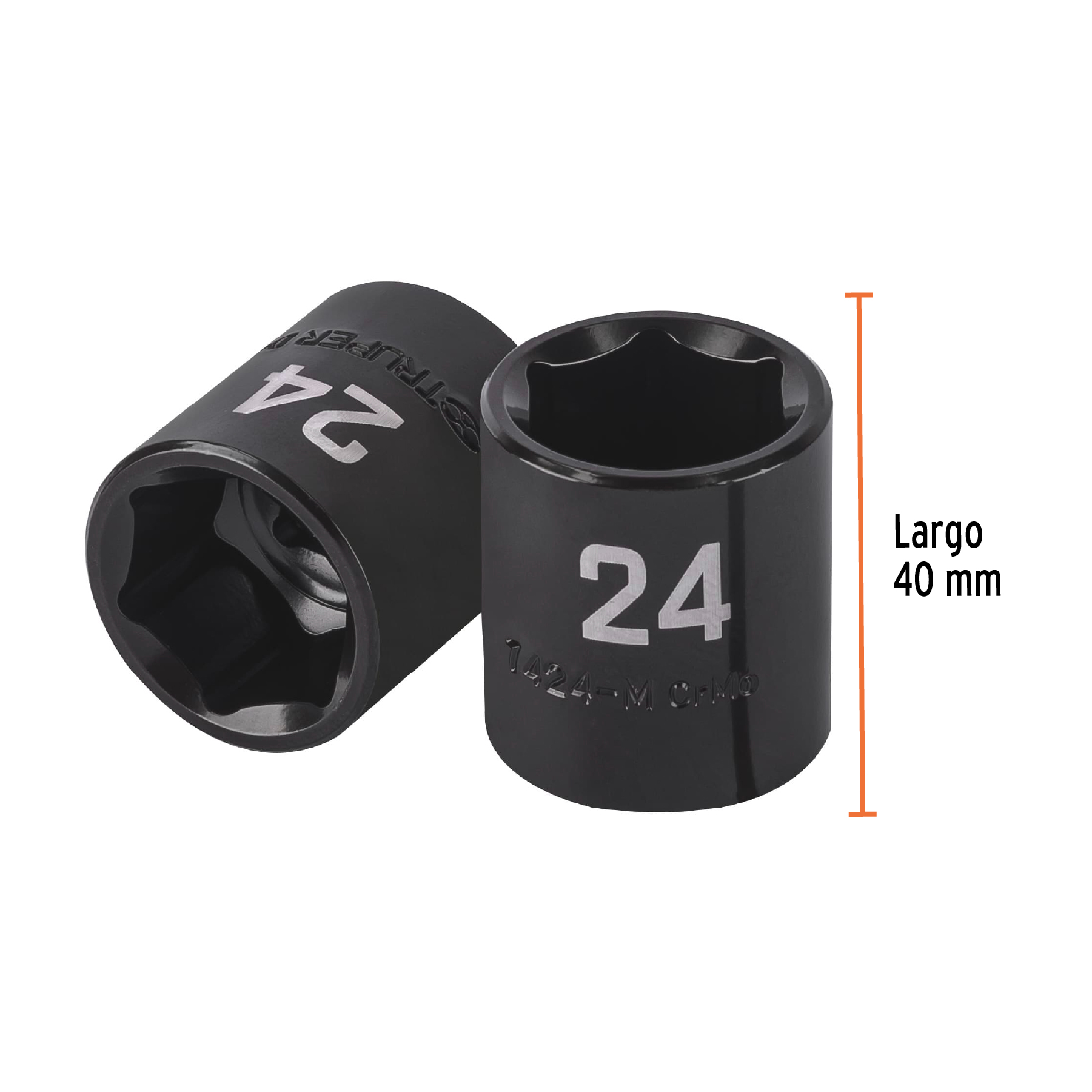 Dado de impacto de 24 mm, 6 puntas, cuadro 1/2′, Truper
