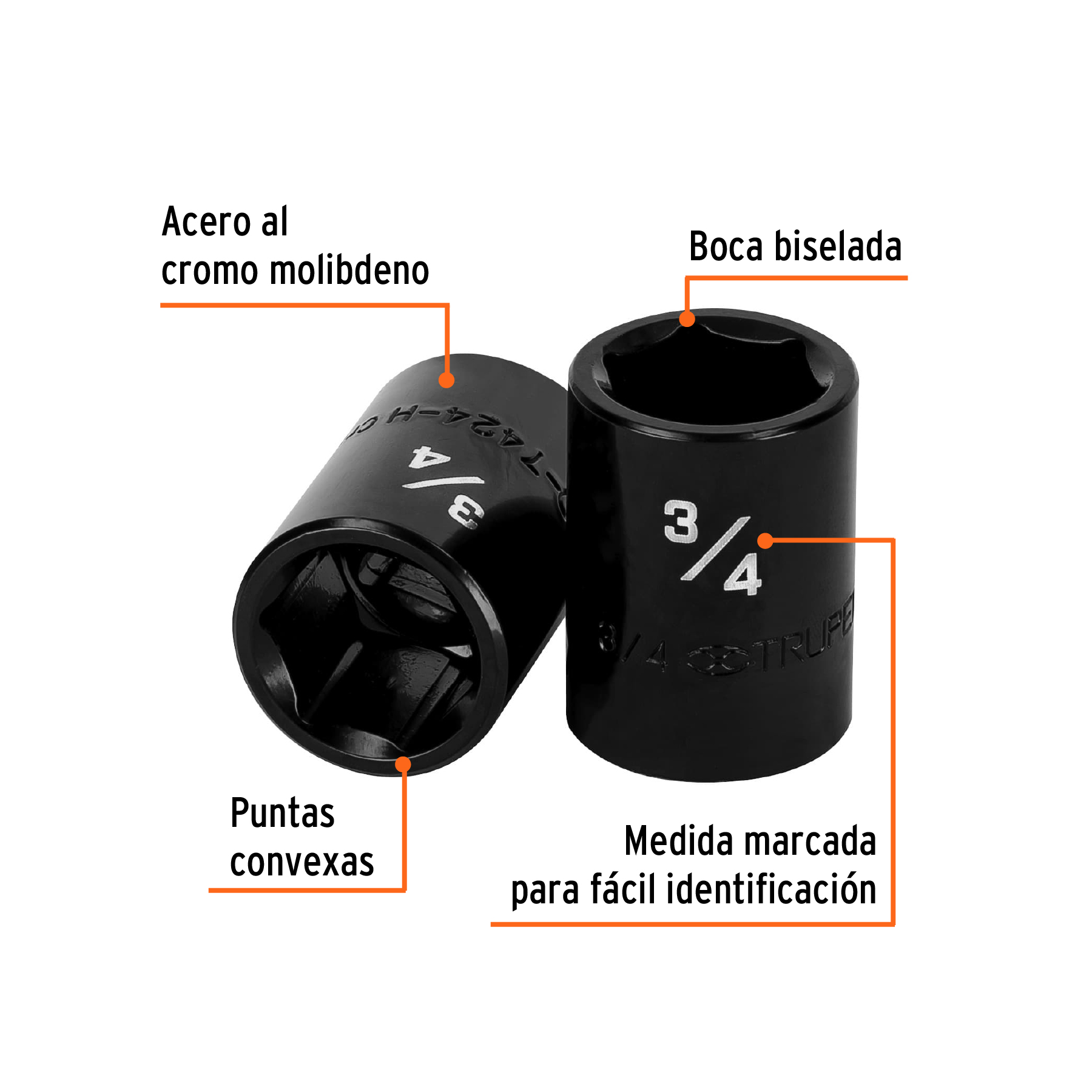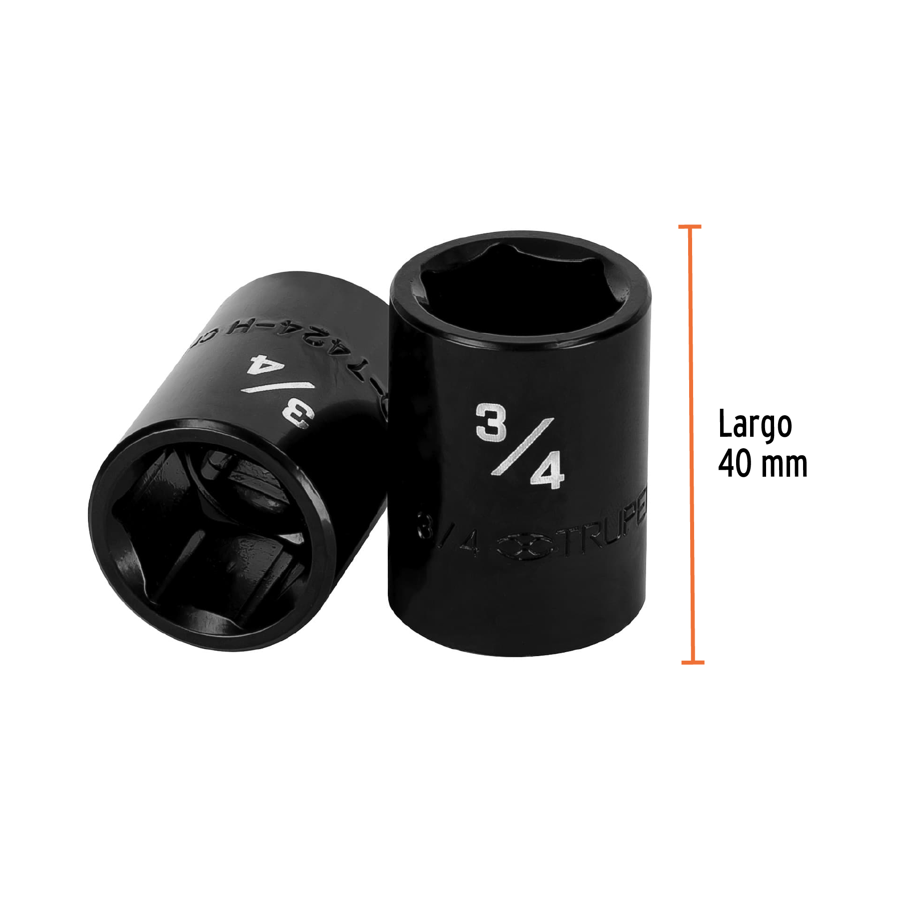Dado de impacto de 3/4′, 6 puntas, cuadro 1/2′, Truper