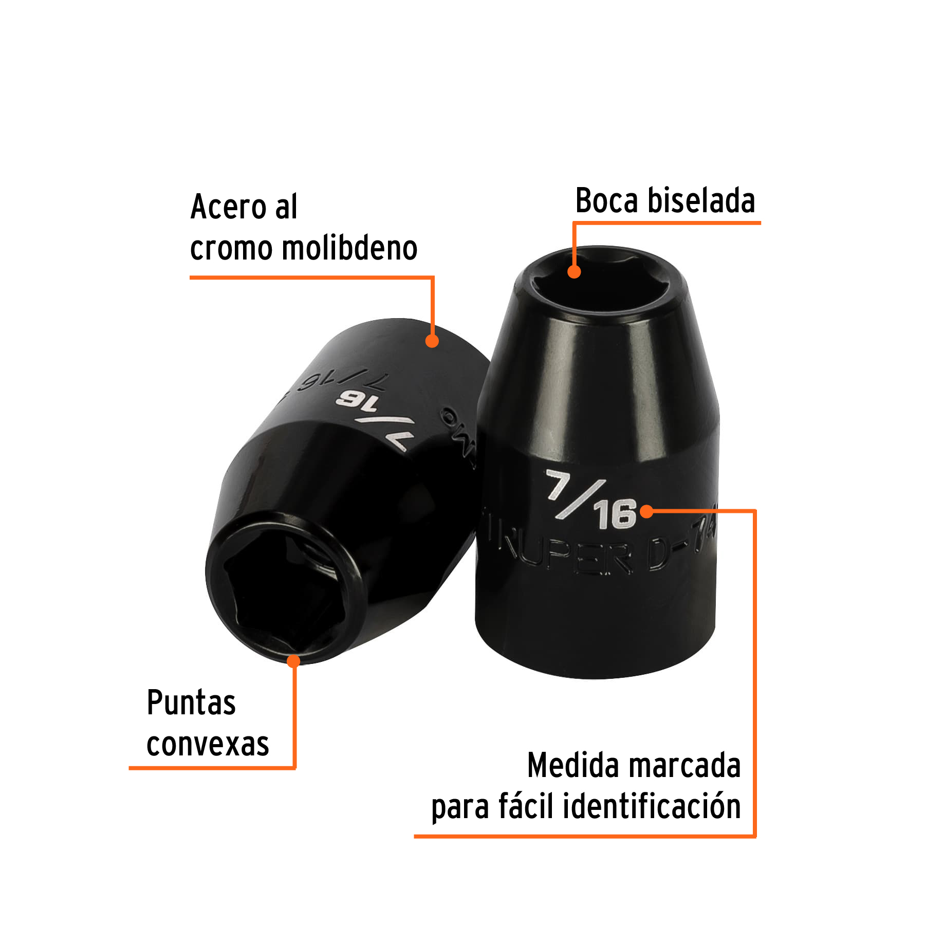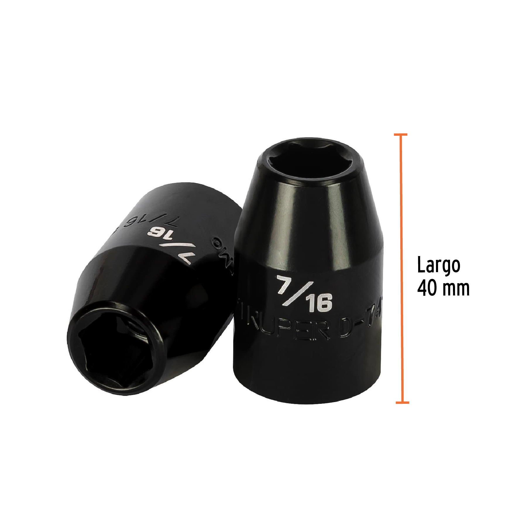 Dado de impacto de 7/16′, 6 puntas, cuadro 1/2′, Truper