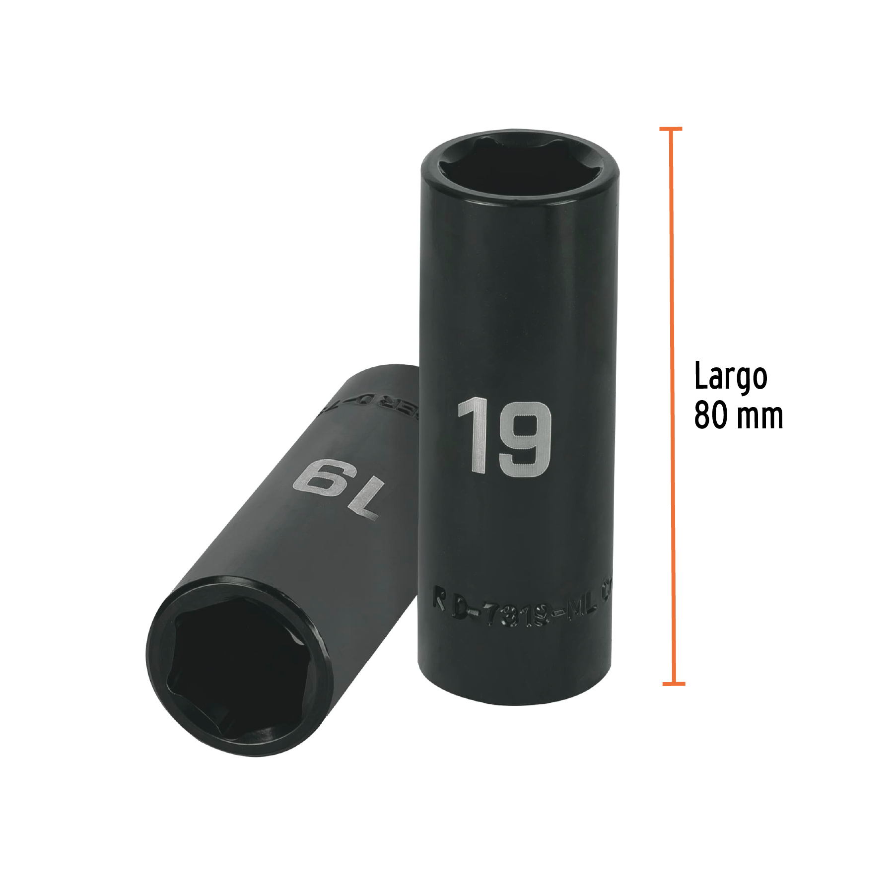 Dado largo cuadro 1/2′ de impacto 6 puntas de 19 mm, Truper