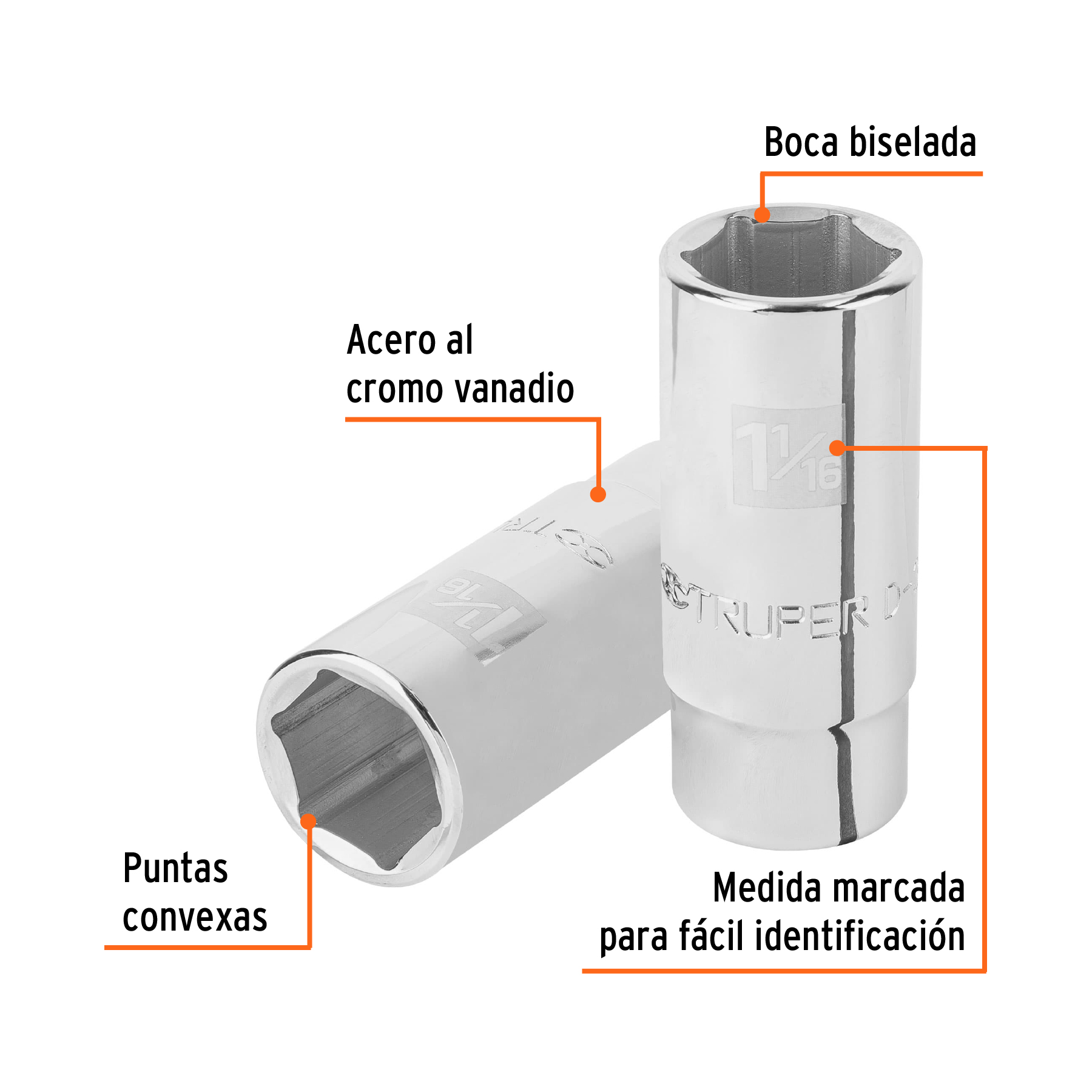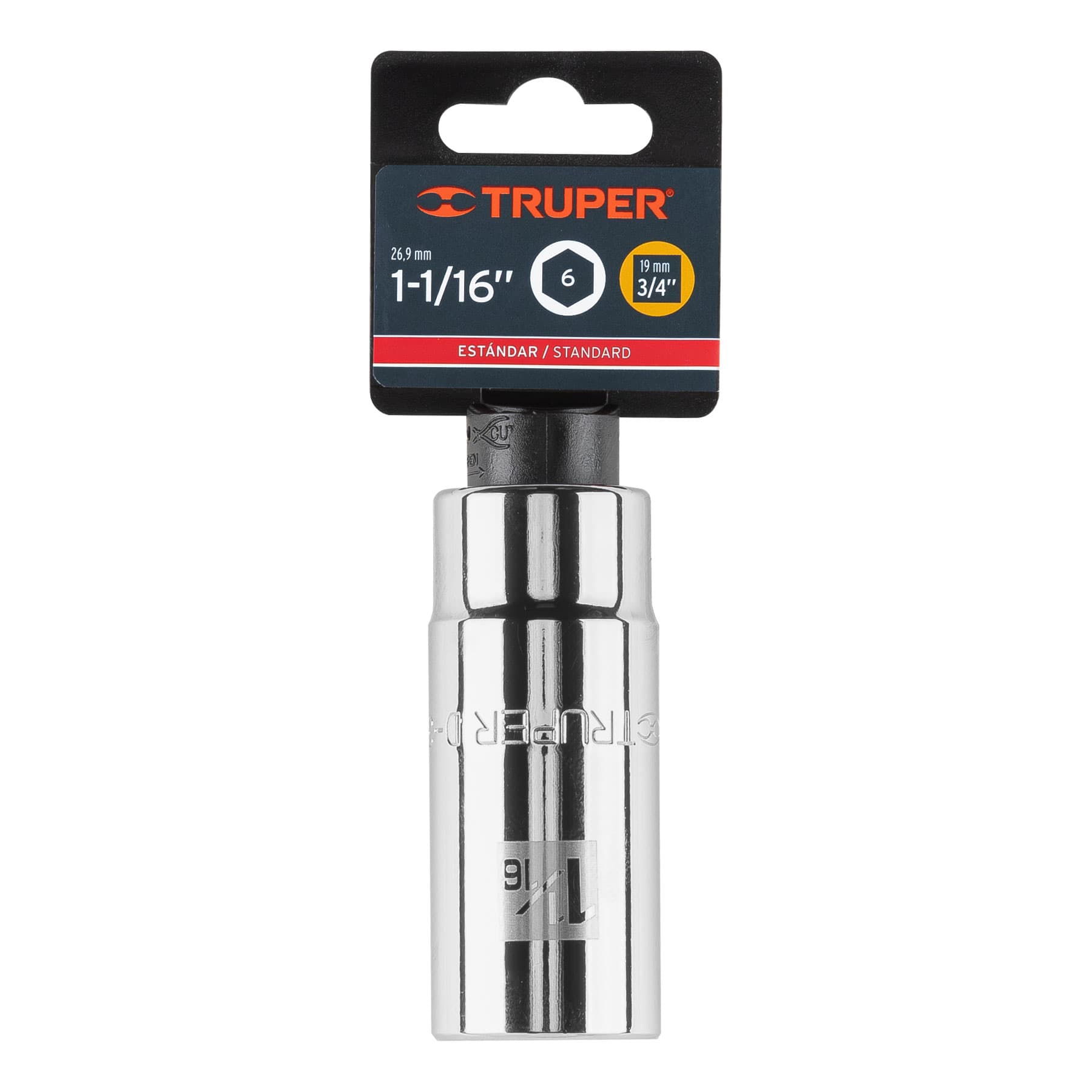 Dado largo de 1-1/16′, 6 puntas, cuadro 3/4′, Truper