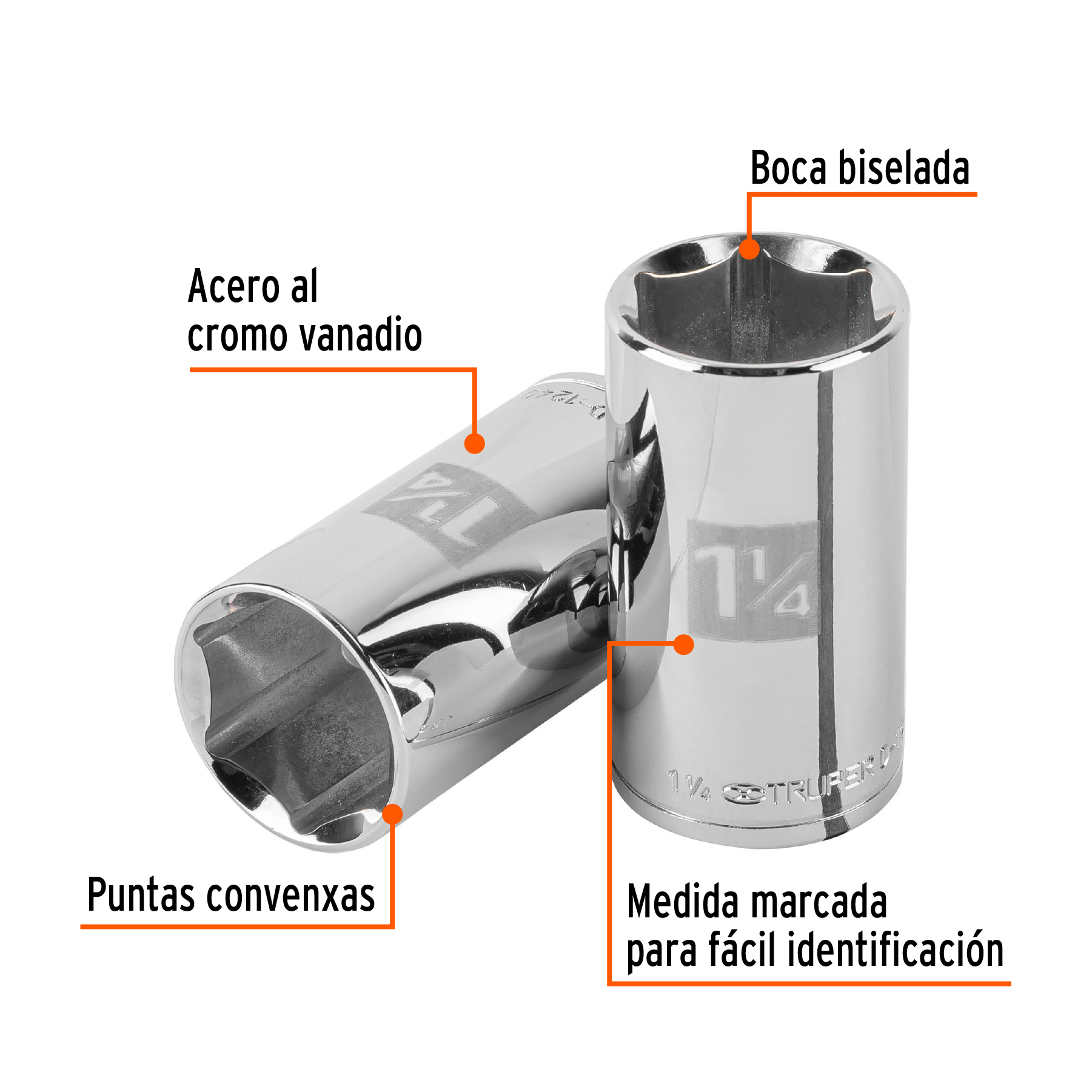 Dado largo de 1-1/4′, 6 puntas, cuadro 1/2′, Truper