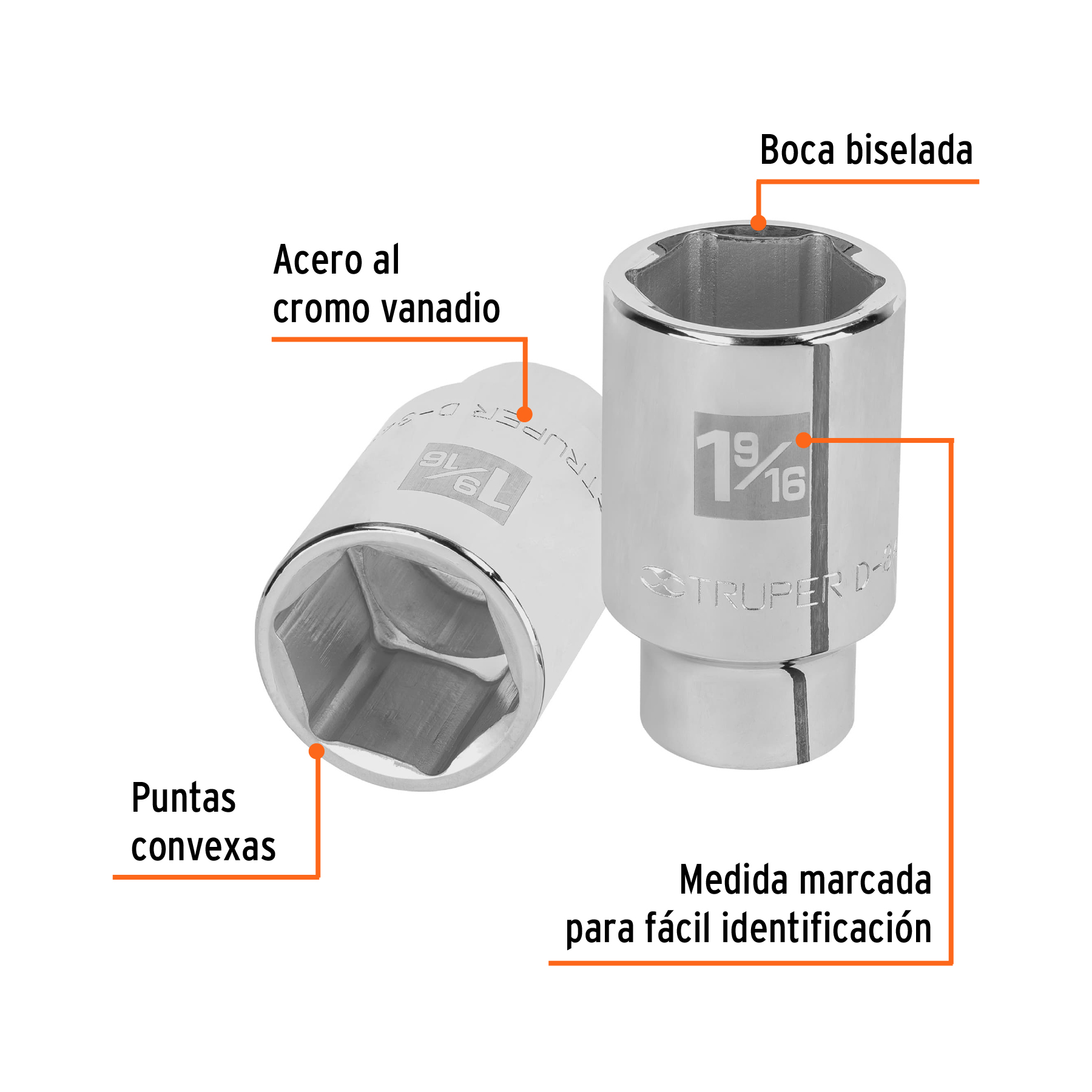 Dado largo de 1-9/16′, 6 puntas, cuadro 3/4′, Truper