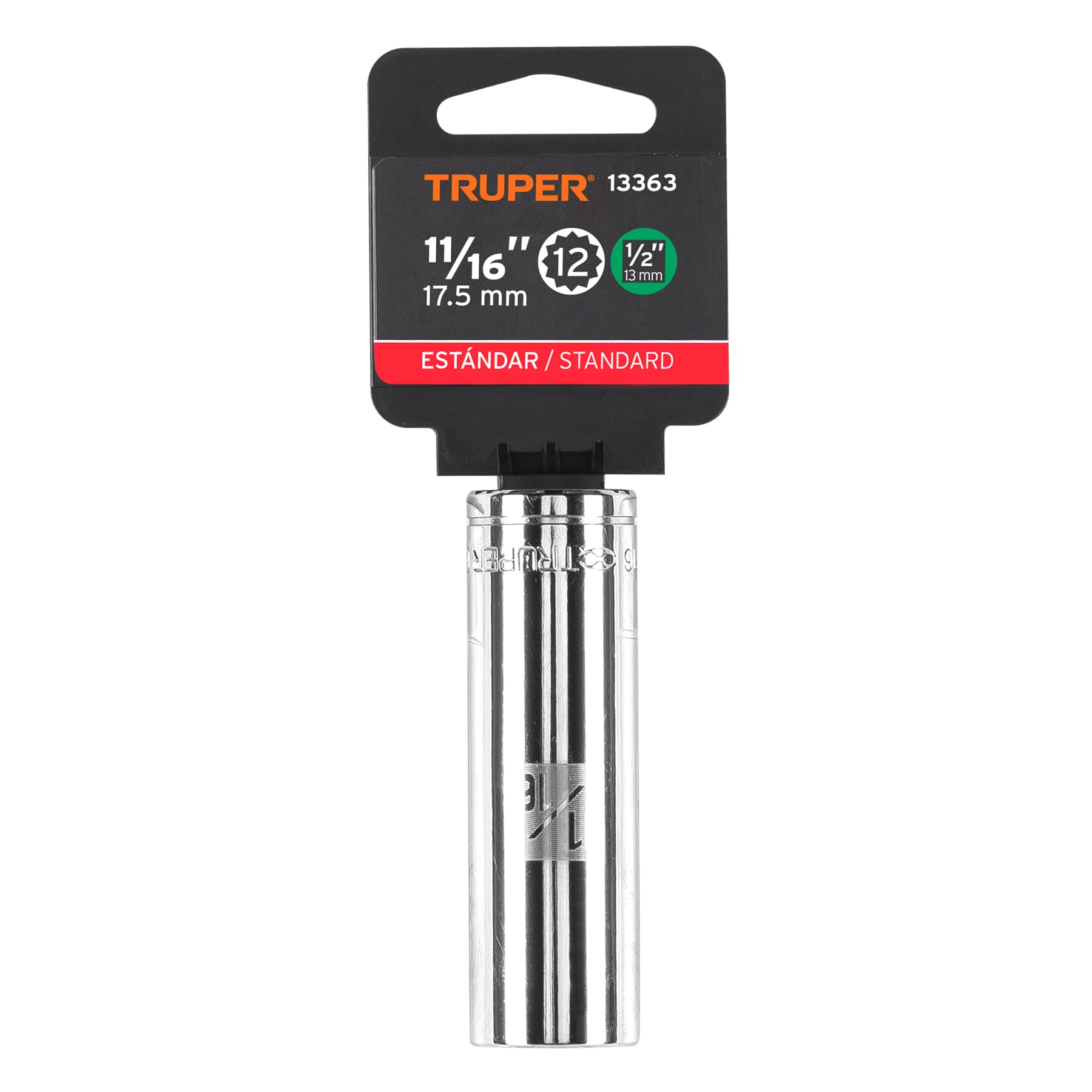 Dado largo de 11/16′, 12 puntas, cuadro 1/2′, Truper