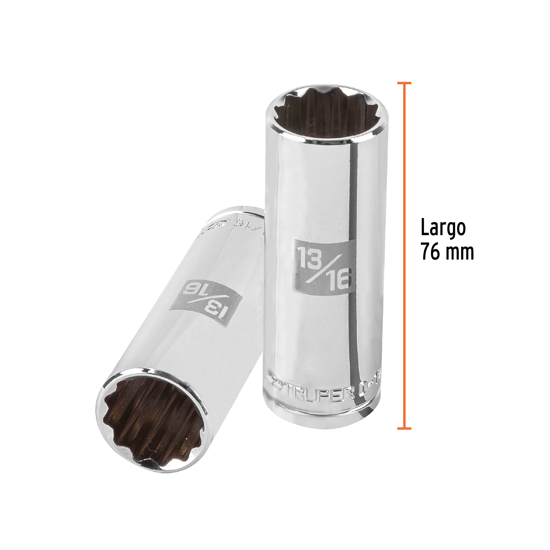 Dado largo de 13/16′, 12 puntas, cuadro 1/2′, Truper