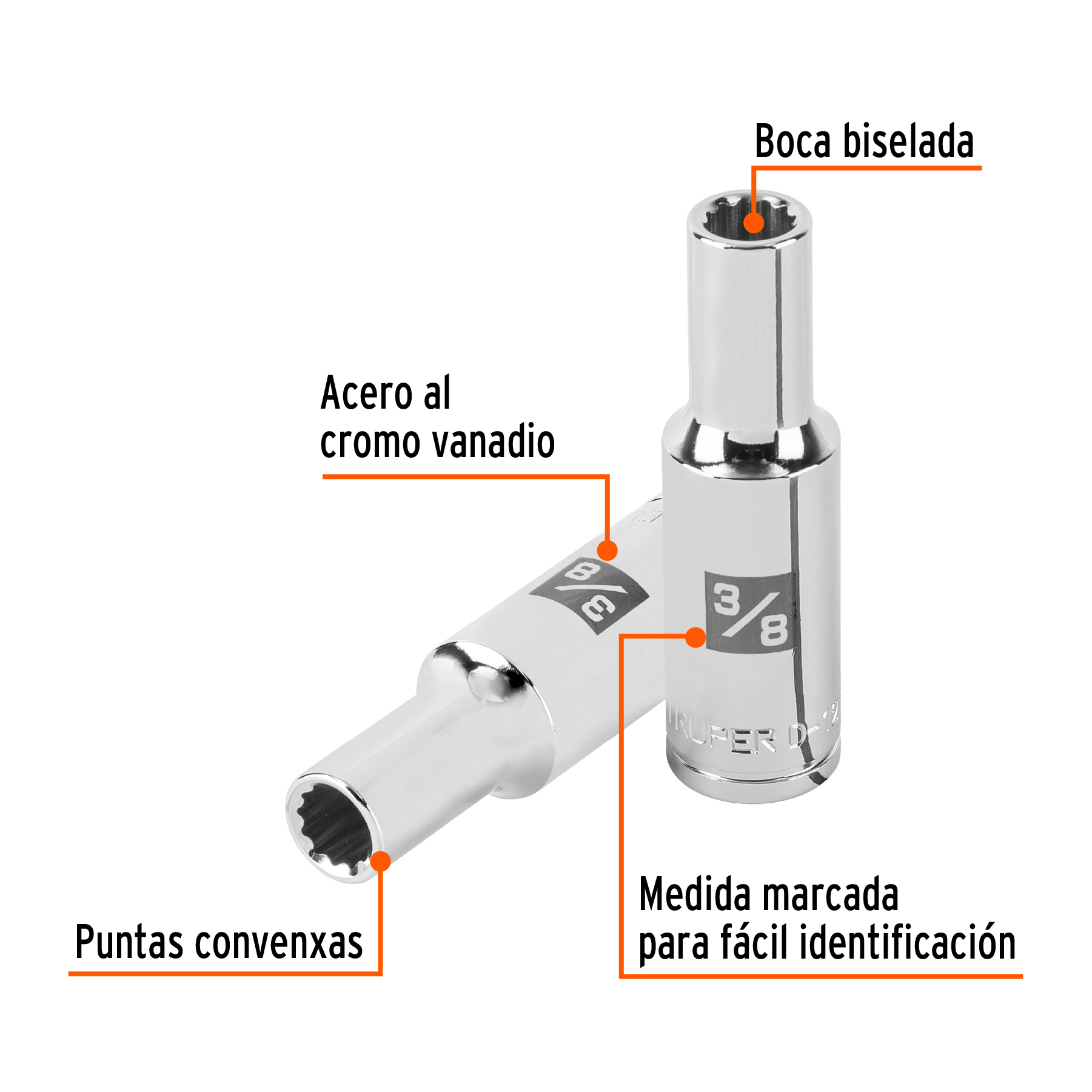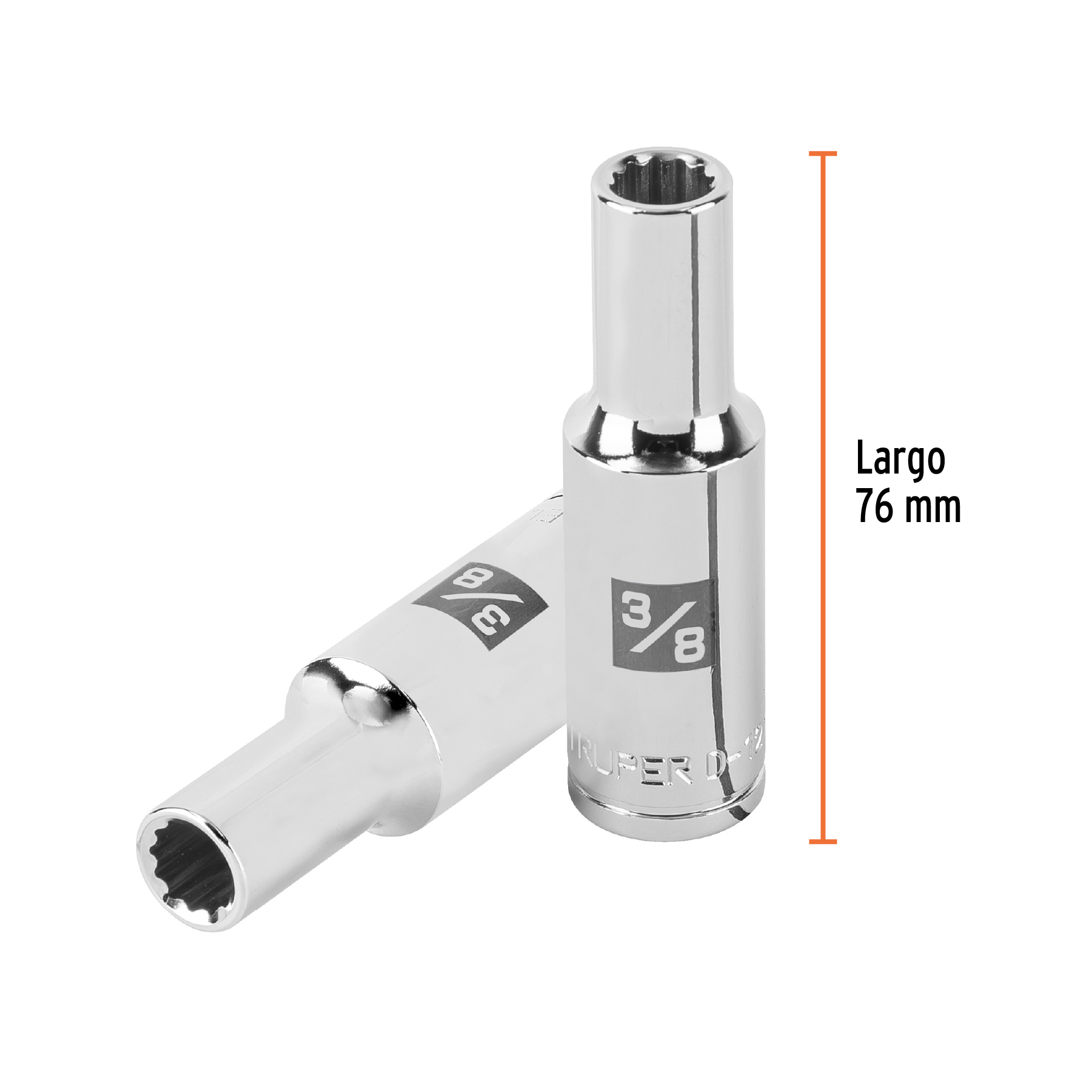 Dado largo de 3/8′ 12 puntas, cuadro 1/2′, Truper