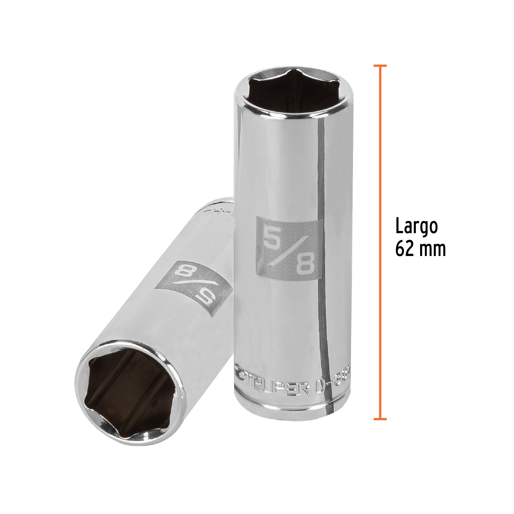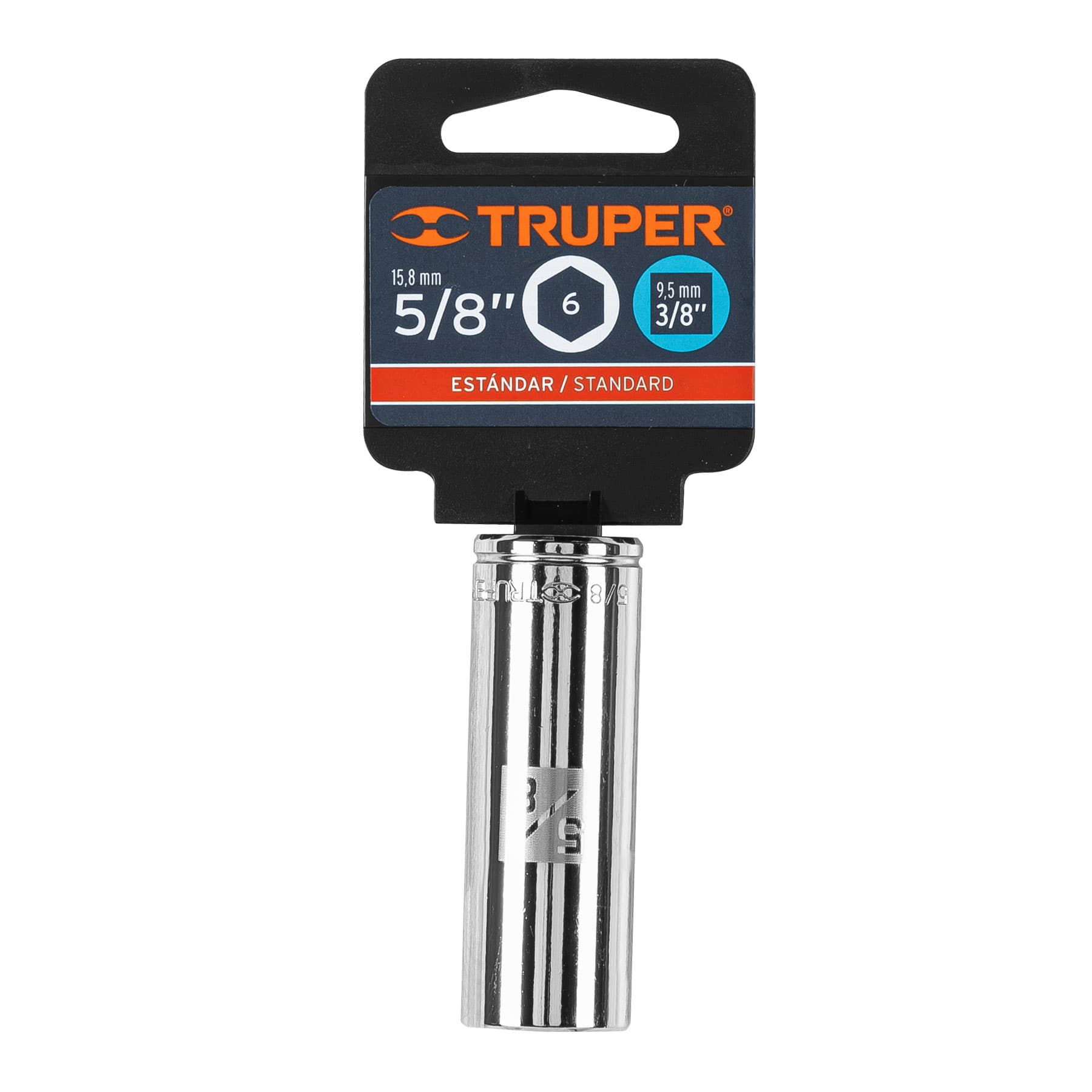 Dado largo de 5/8′, 6 puntas, cuadro 3/8′, Truper